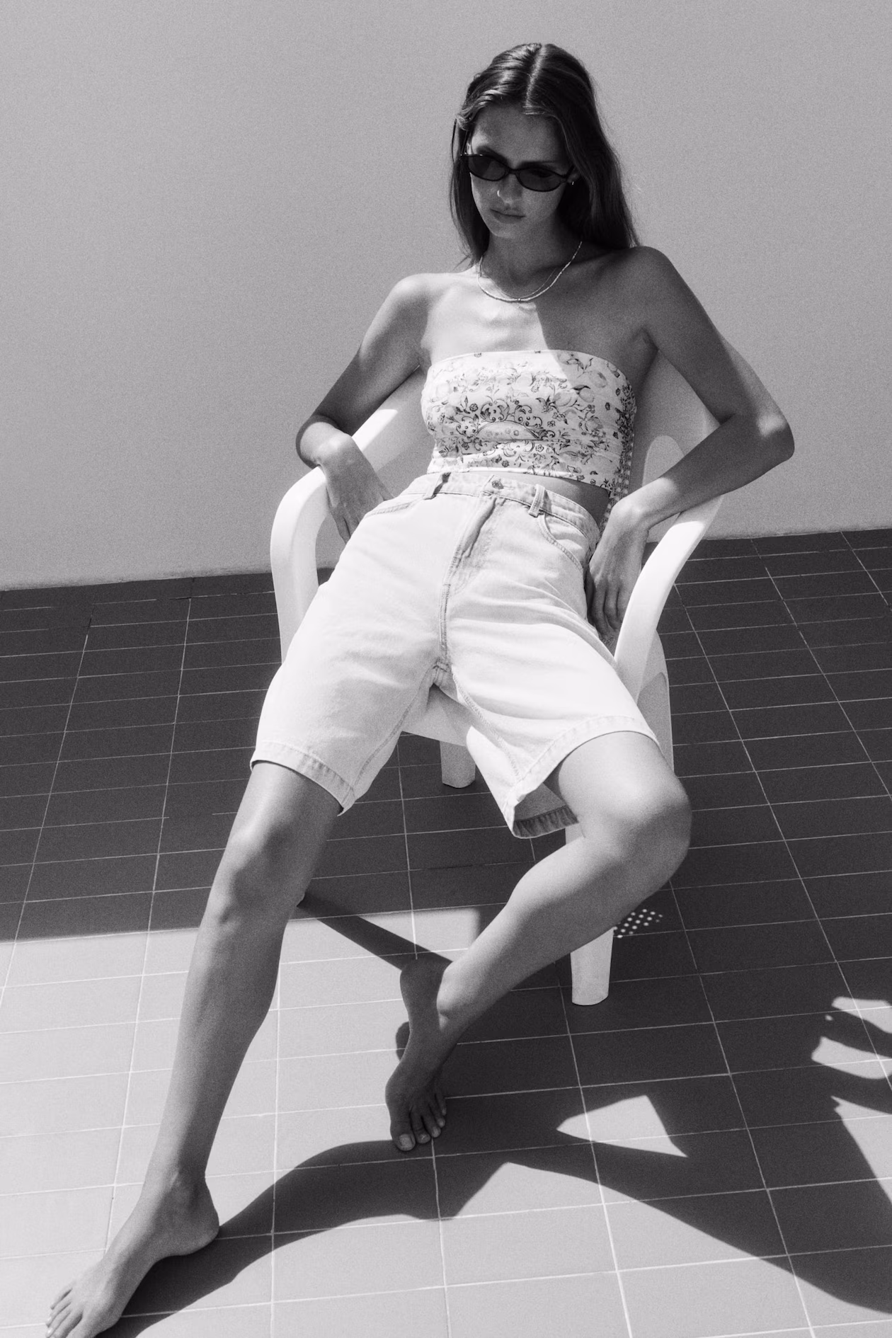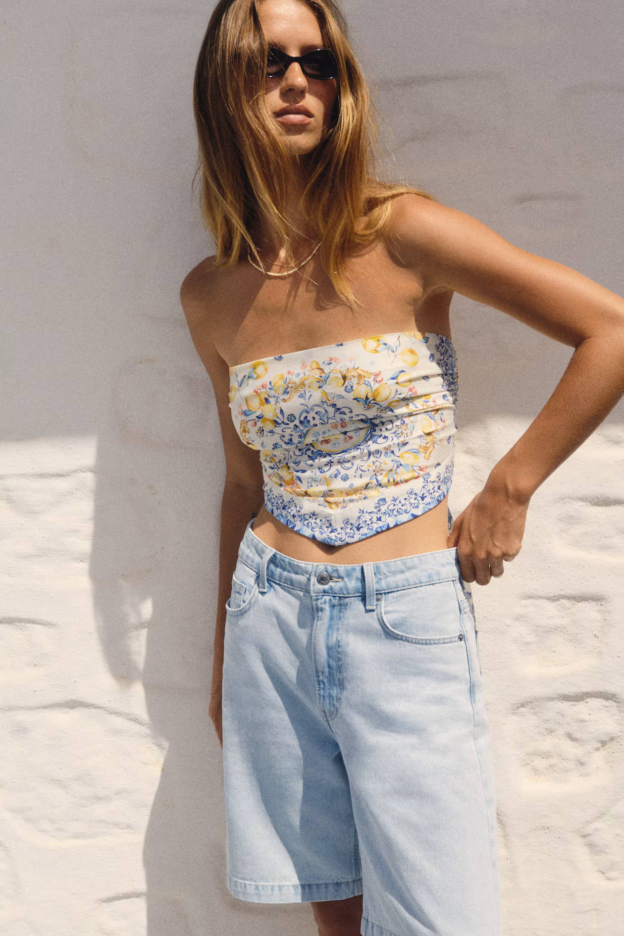 5-pocket, knee-length shorts in cotton denim. High waist and zip fly with button.