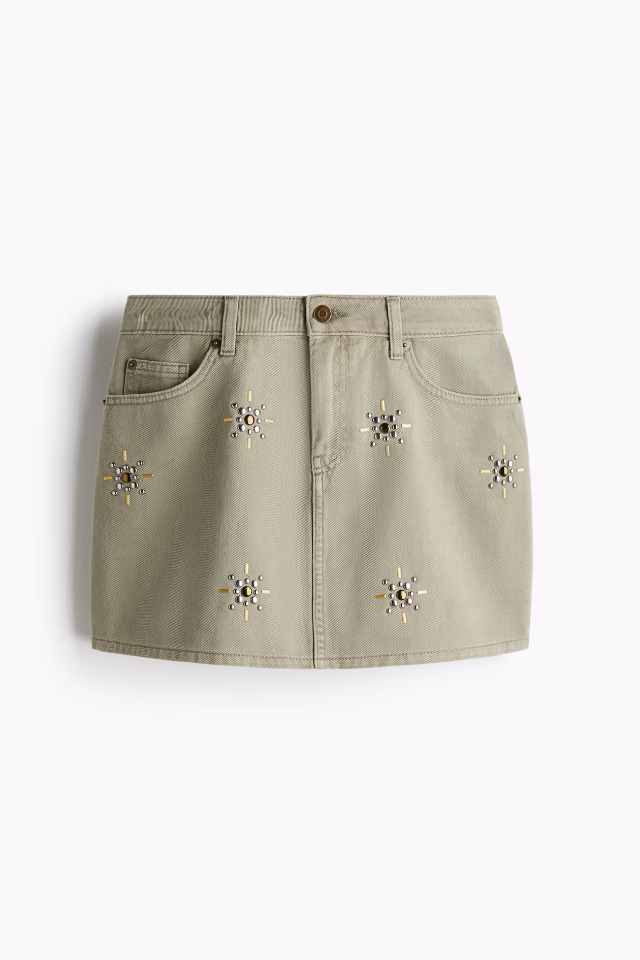 5-pocket mini skirt in rigid cotton denim. Regular waist and zip fly with button.