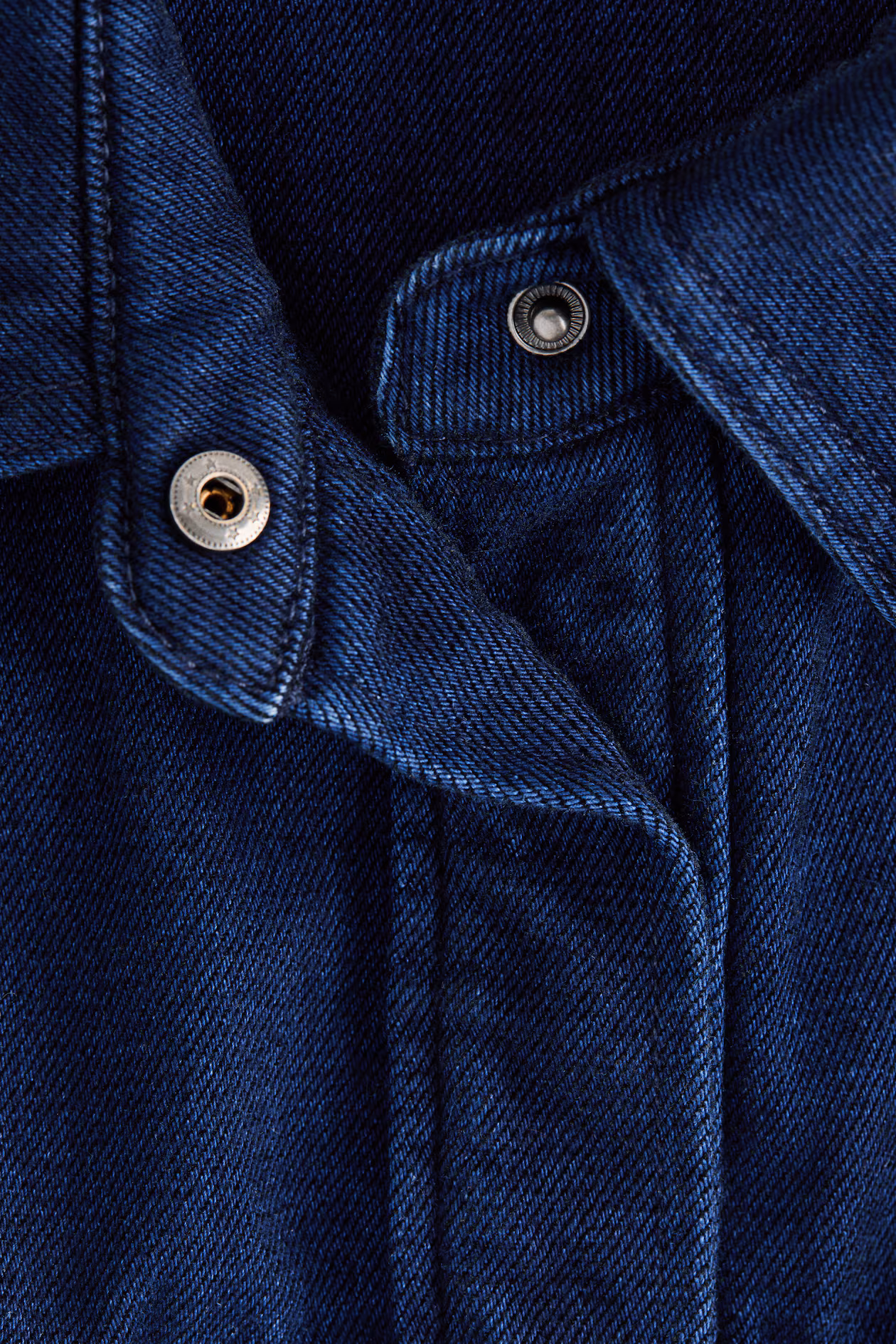 Relaxed-fit shirt in rigid cotton denim with a yoke at front and back. Collar, concealed snap fasteners at front, chest pockets with flap, and dropped shoulders. Rounded hem.
