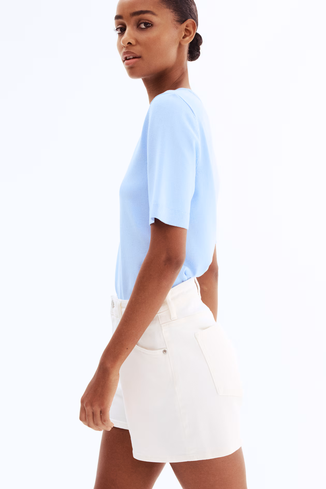 5-pocket shorts in cotton denim with gentle stretch for good comfort. Regular waist and zip fly with button.