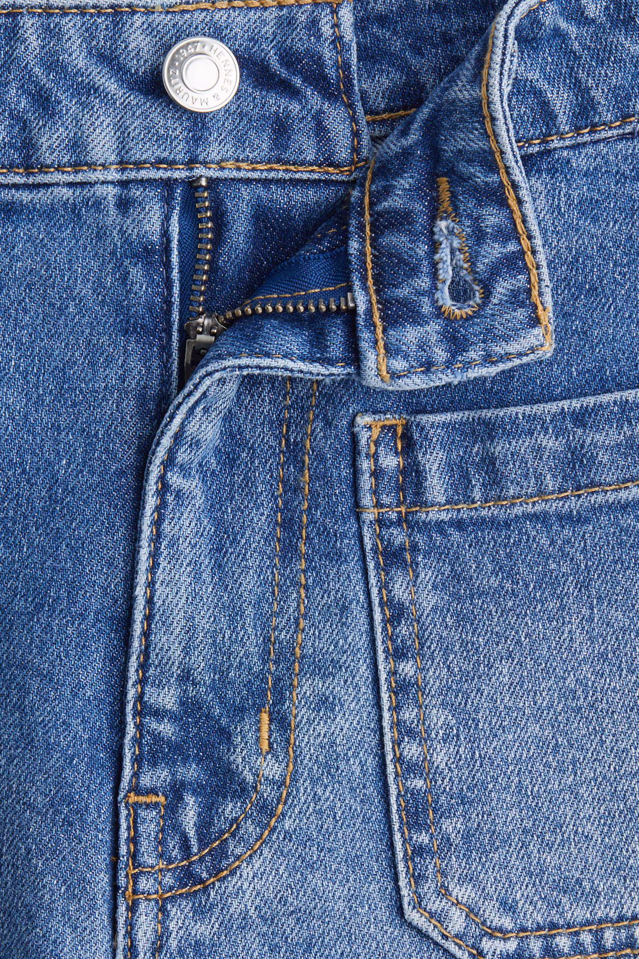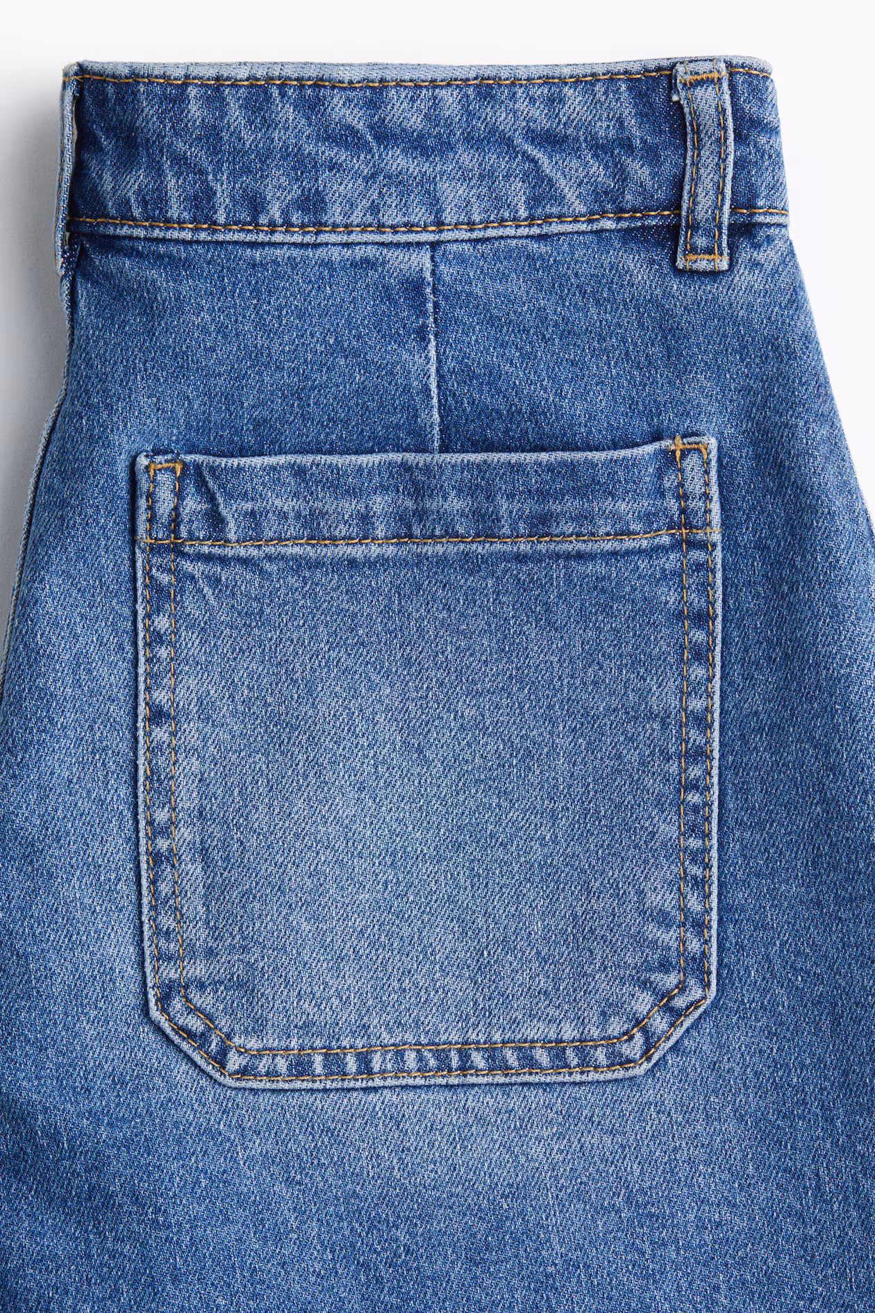 Shorts in cotton denim with gentle stretch. High waist, zip fly with button, patch front pockets, and patch back pockets.