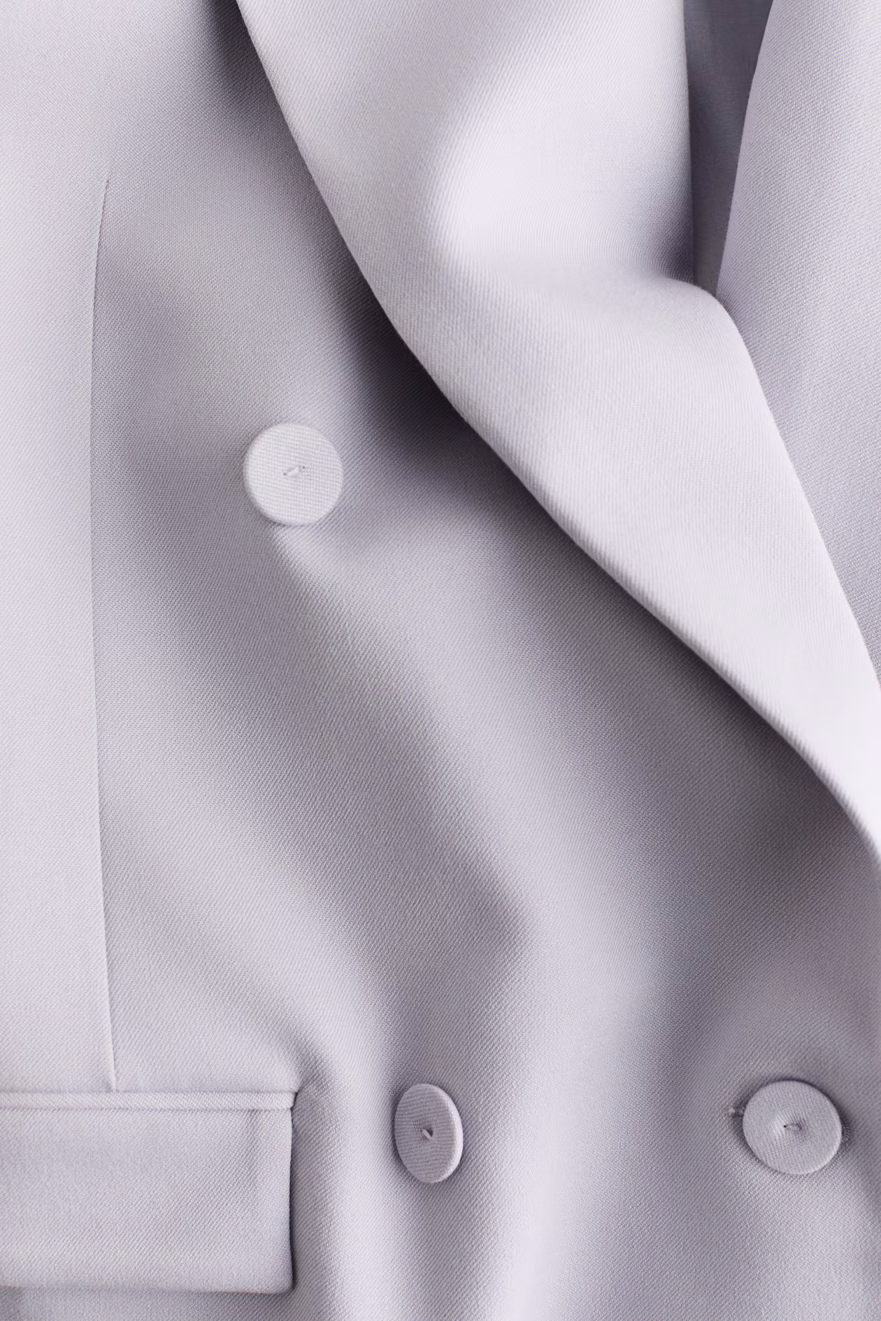 Double-breasted blazer in woven fabric. Wide pointed lapels, covered buttons at front, a welt chest pocket, and welt front pockets with flap. Shoulder pads for a defined silhouette. Lined.