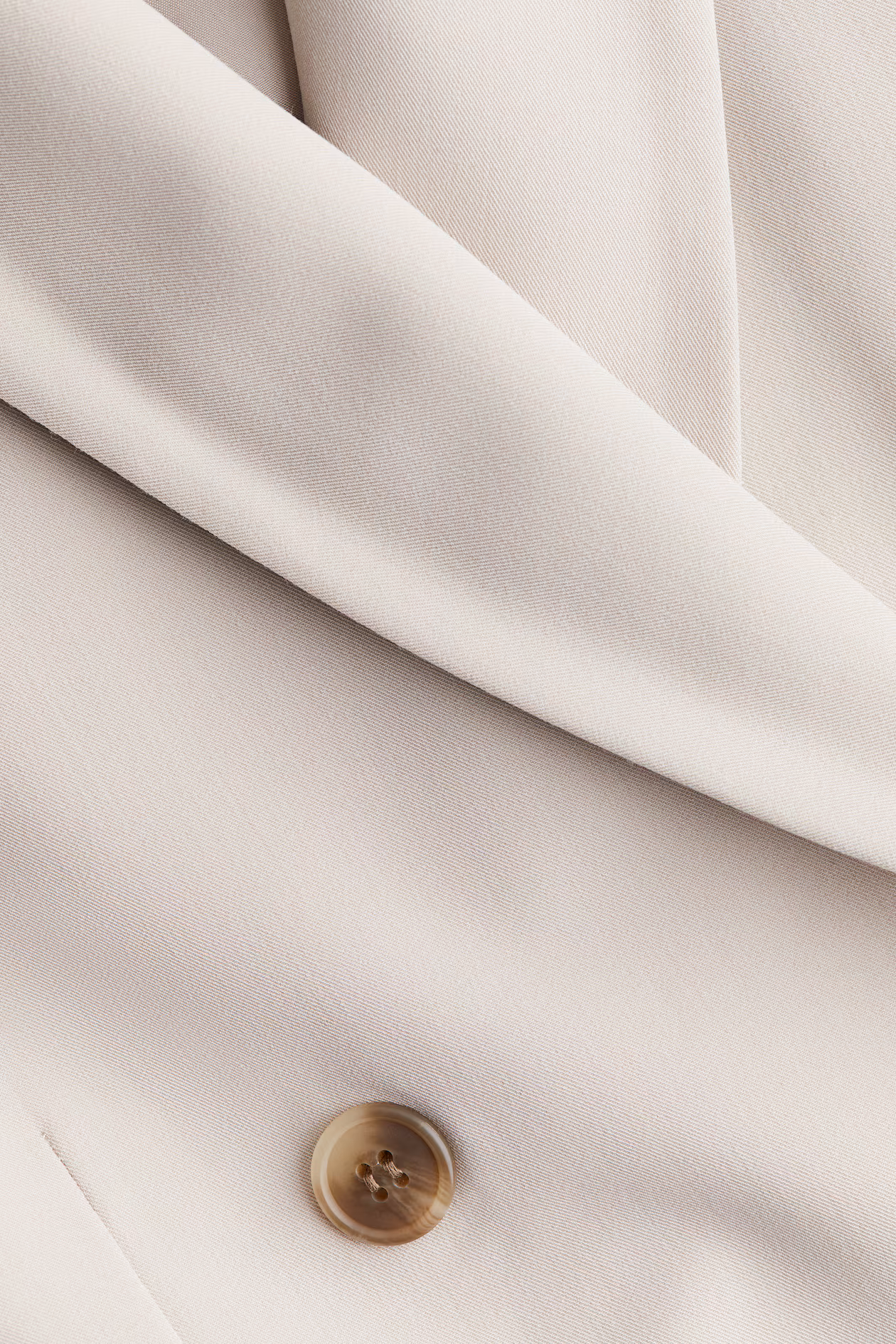 Slightly longer, double-breasted blazer. Notched lapels, buttons at front, and welt front pockets with flap. Shoulder pads and long sleeves. Lined.