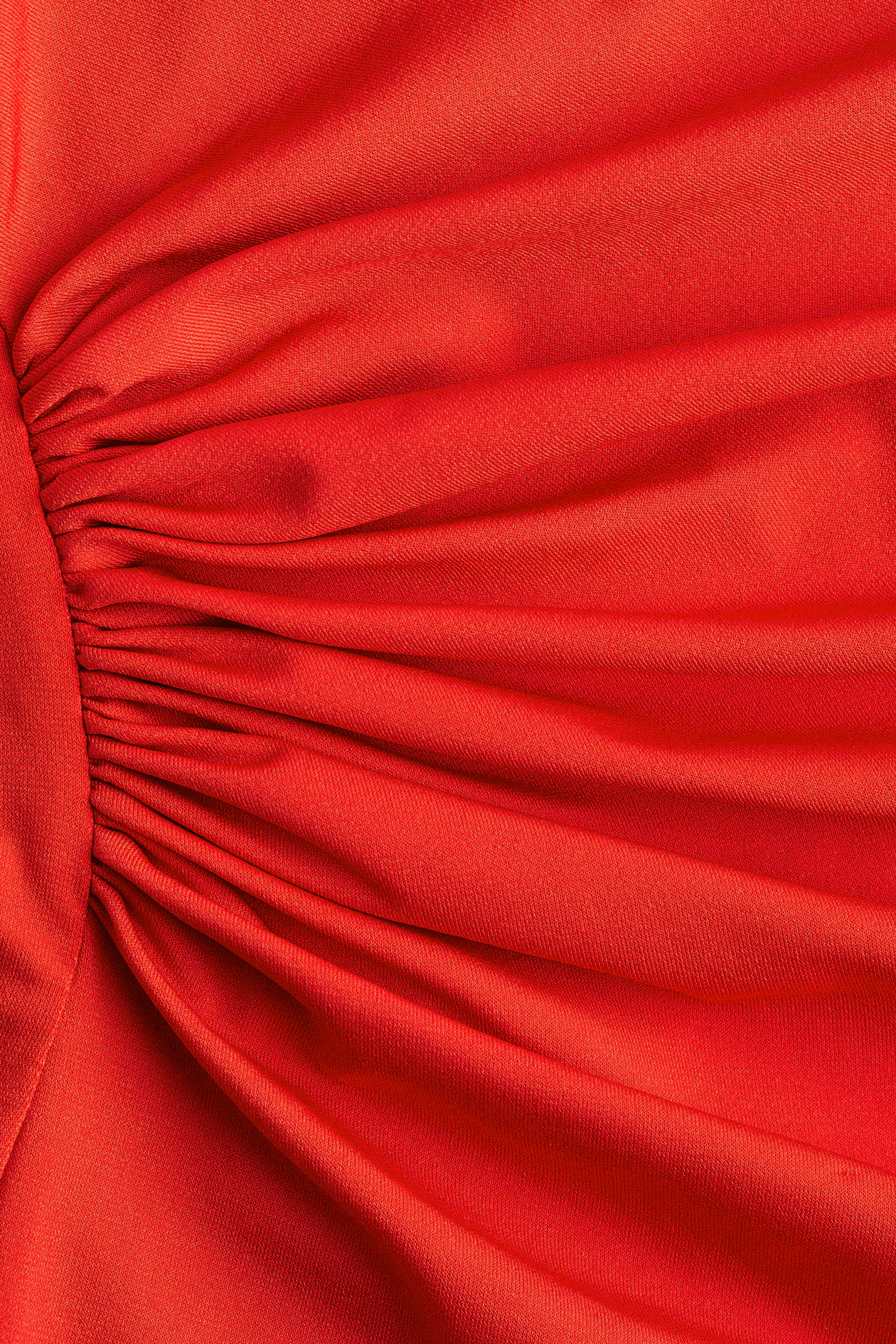 Bodysuit in soft jersey. Wide shoulder straps, square neckline at front and back, and gathers at one side of waist for a draped effect. Concealed snap fasteners at gusset and cutaway coverage at back. Lined.