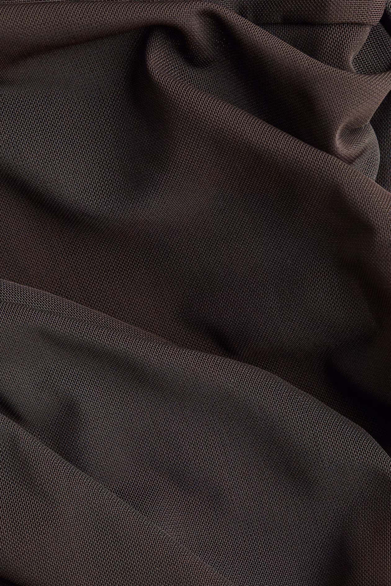 Fitted, sleeveless, calf-length dress in mesh with draping at front for a flattering, elegant silhouette. Round neckline and a softly flowing skirt. Lined.