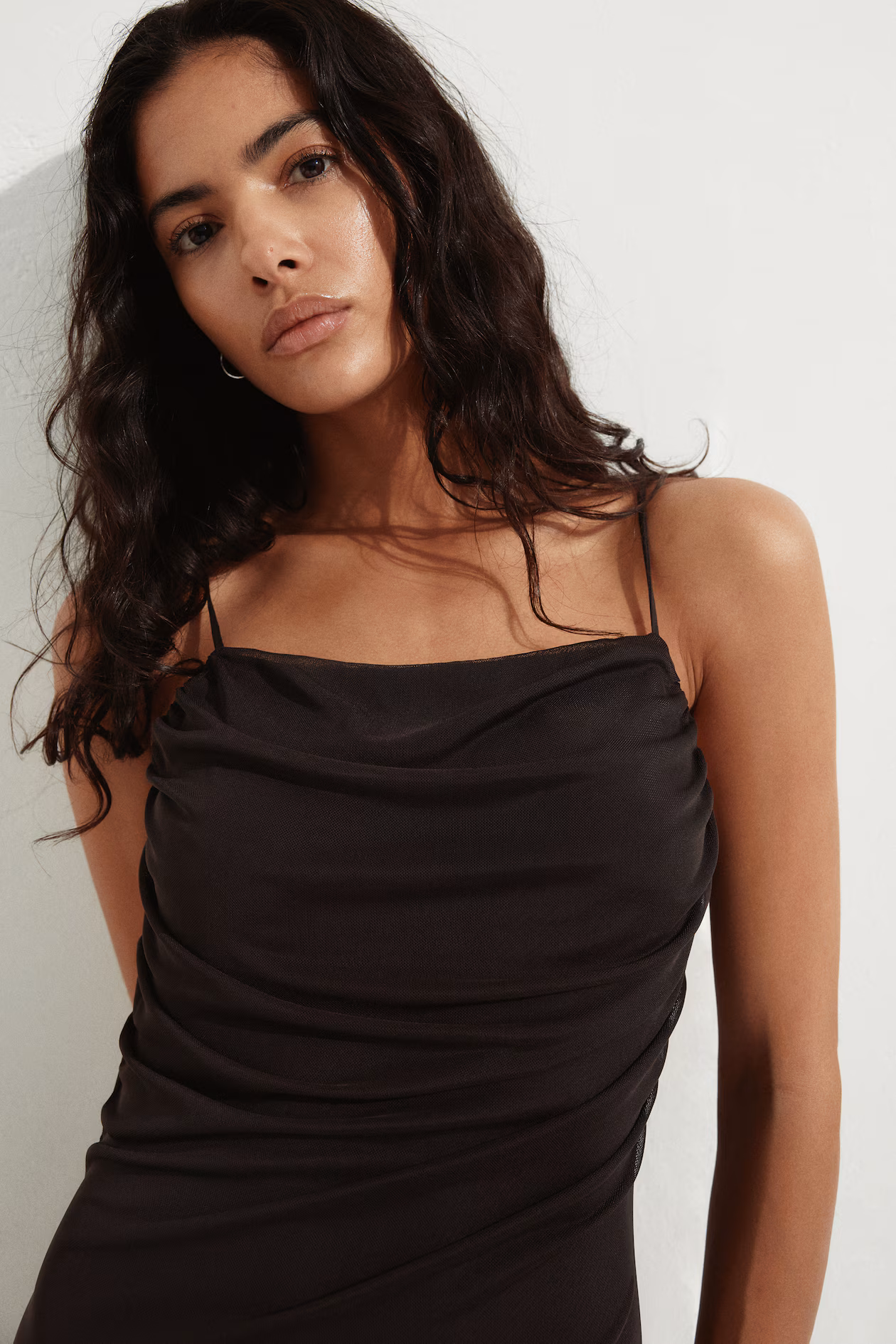 Draped Mesh Strappy Dress