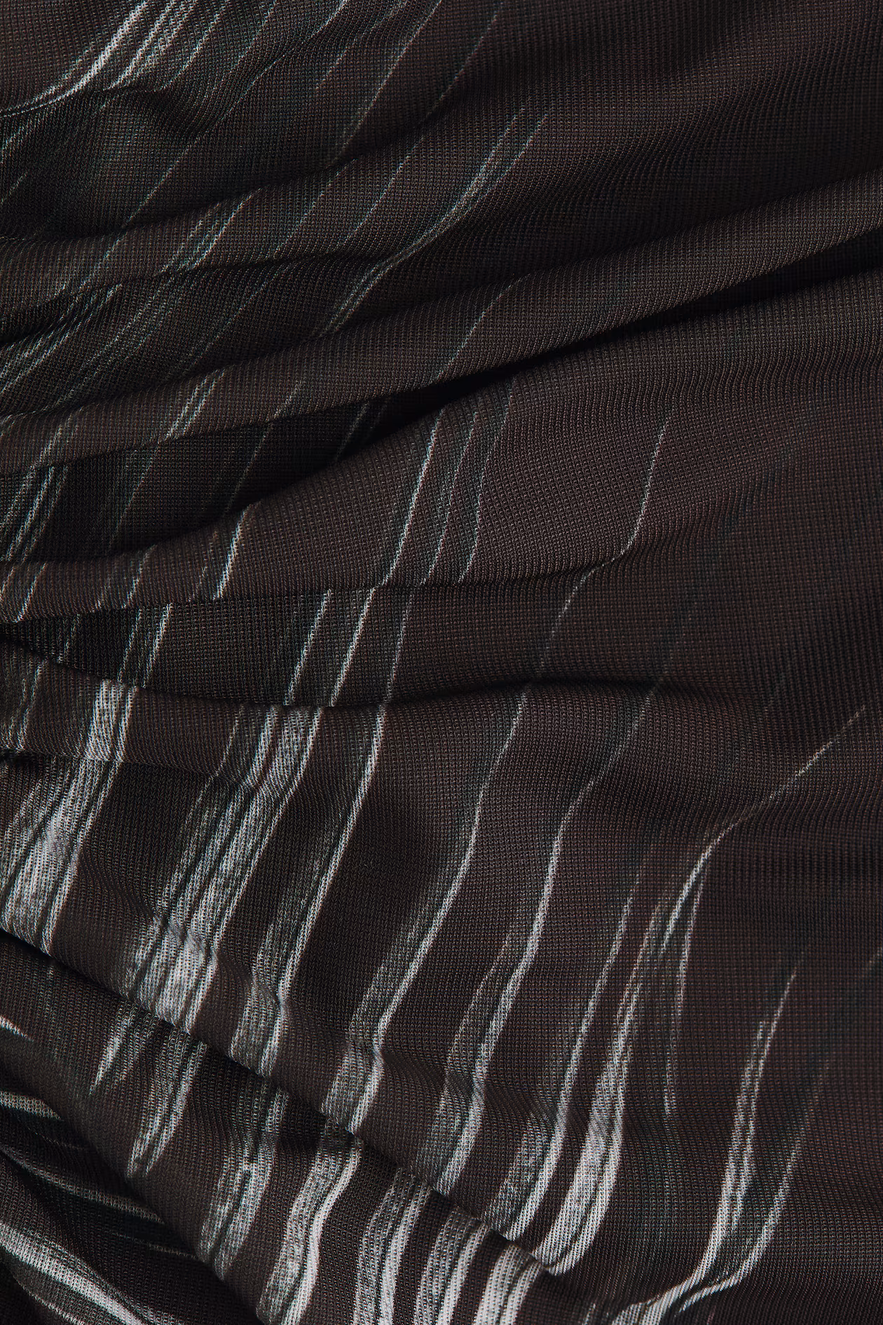 Slim-fit, sleeveless, calf-length dress in jersey with a mock turtleneck. Gathers on one shoulder and at opposite side of waist for a draped effect. Straight-cut hem with a slit at one side.