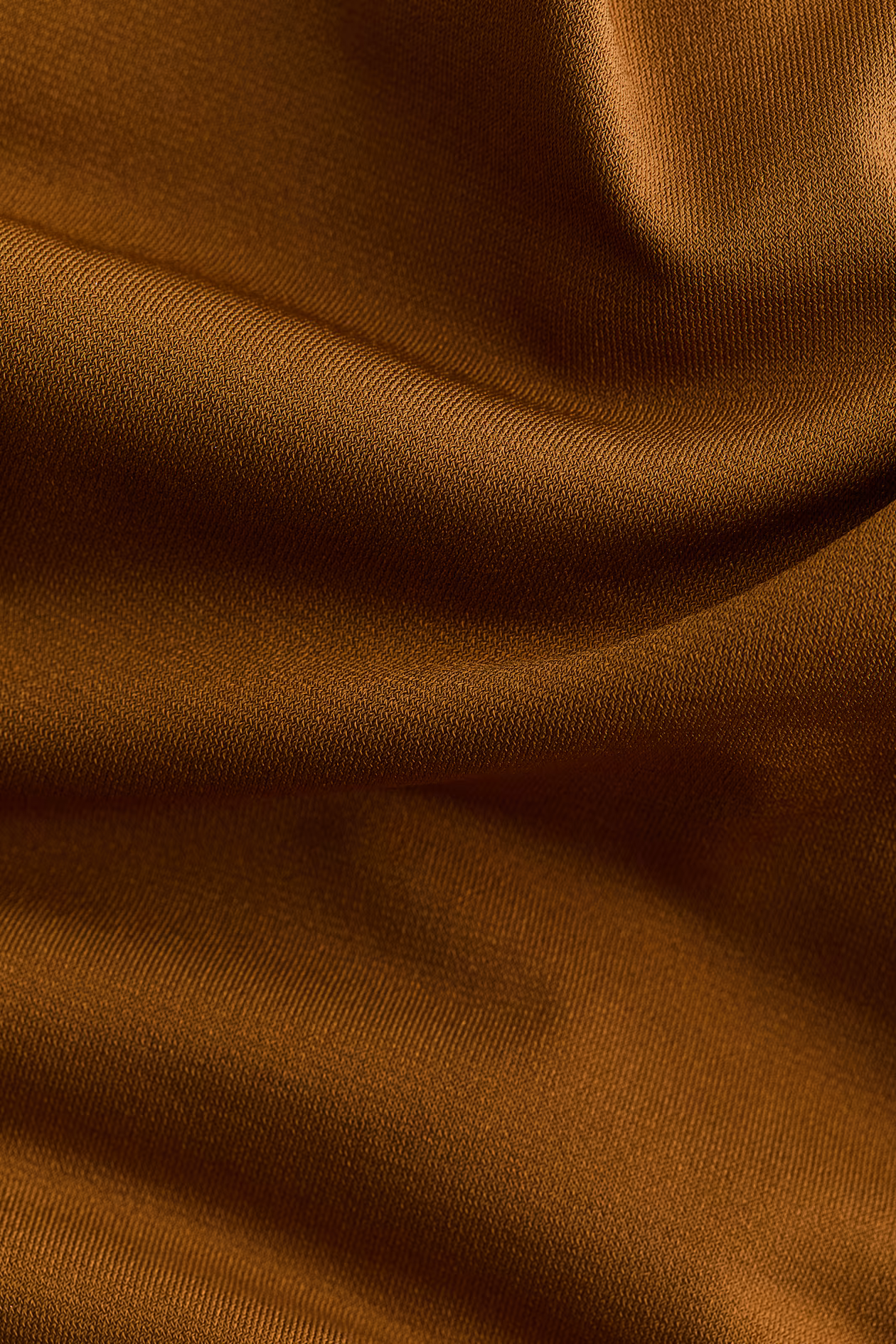 Fitted, one-shoulder, calf-length dress in crêpe jersey with an asymmetric neckline. Gathers on one shoulder and at one side for a gently draped effect. Twisted sleeve panel, and one long sleeve.