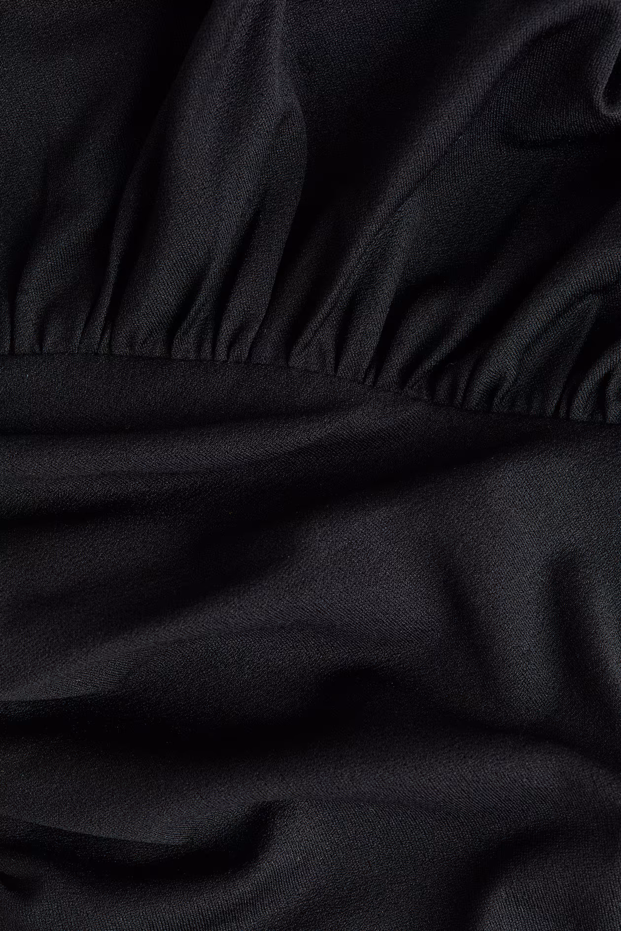 Thong bodysuit in soft jersey with one wide shoulder strap. Gathered seam at front, at one side, and on shoulder for a gently draped effect. Concealed snap fasteners at gusset.