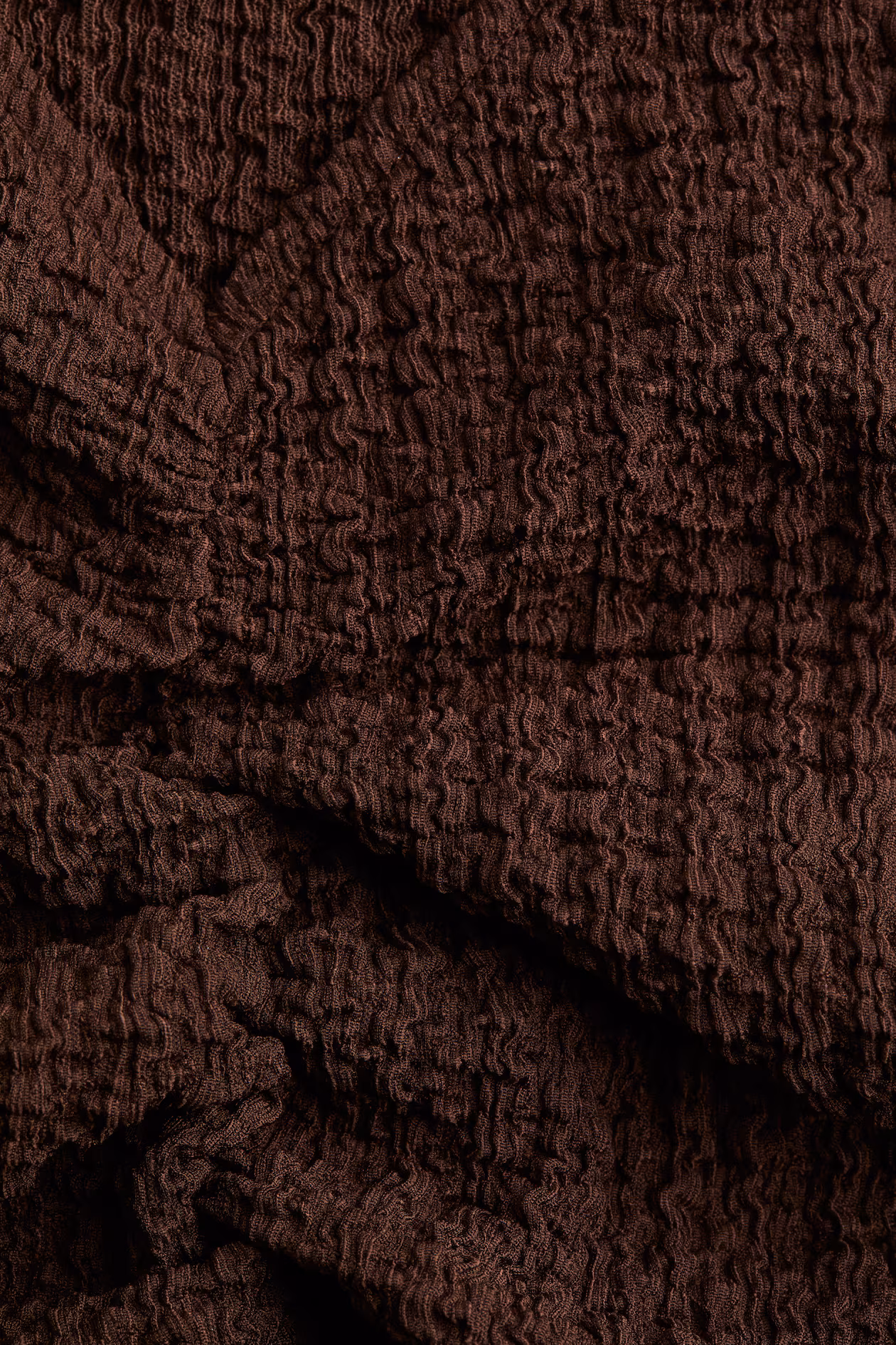 Fitted, V-neck top in textured jersey. Gathered vertical seam at front and at sides for a draped effect. Overlocked edges at cuffs and hem.