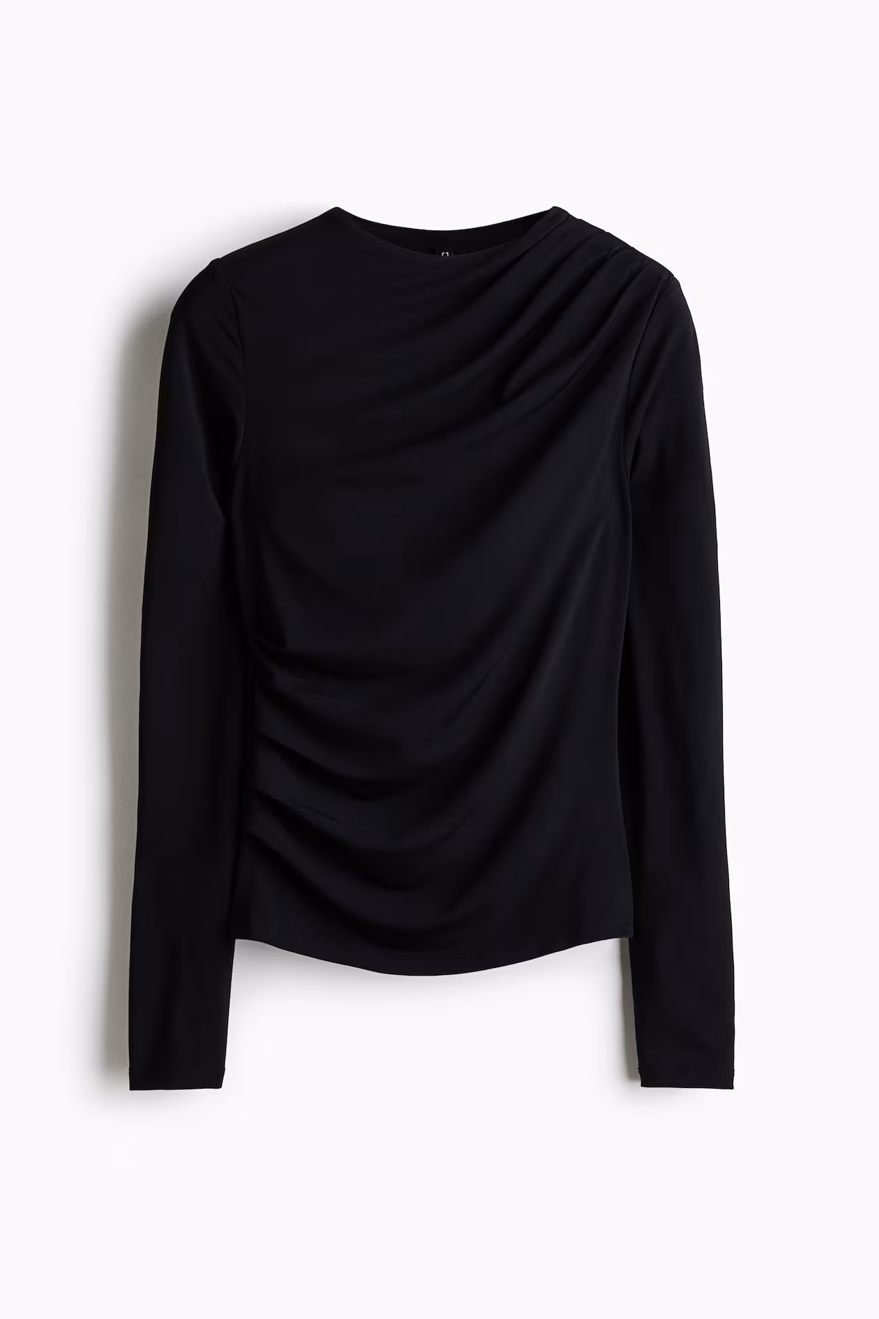 Fitted, long-sleeved top in jersey with a mock turtleneck. Pleats on one shoulder and at opposite side of waist for a draped effect.