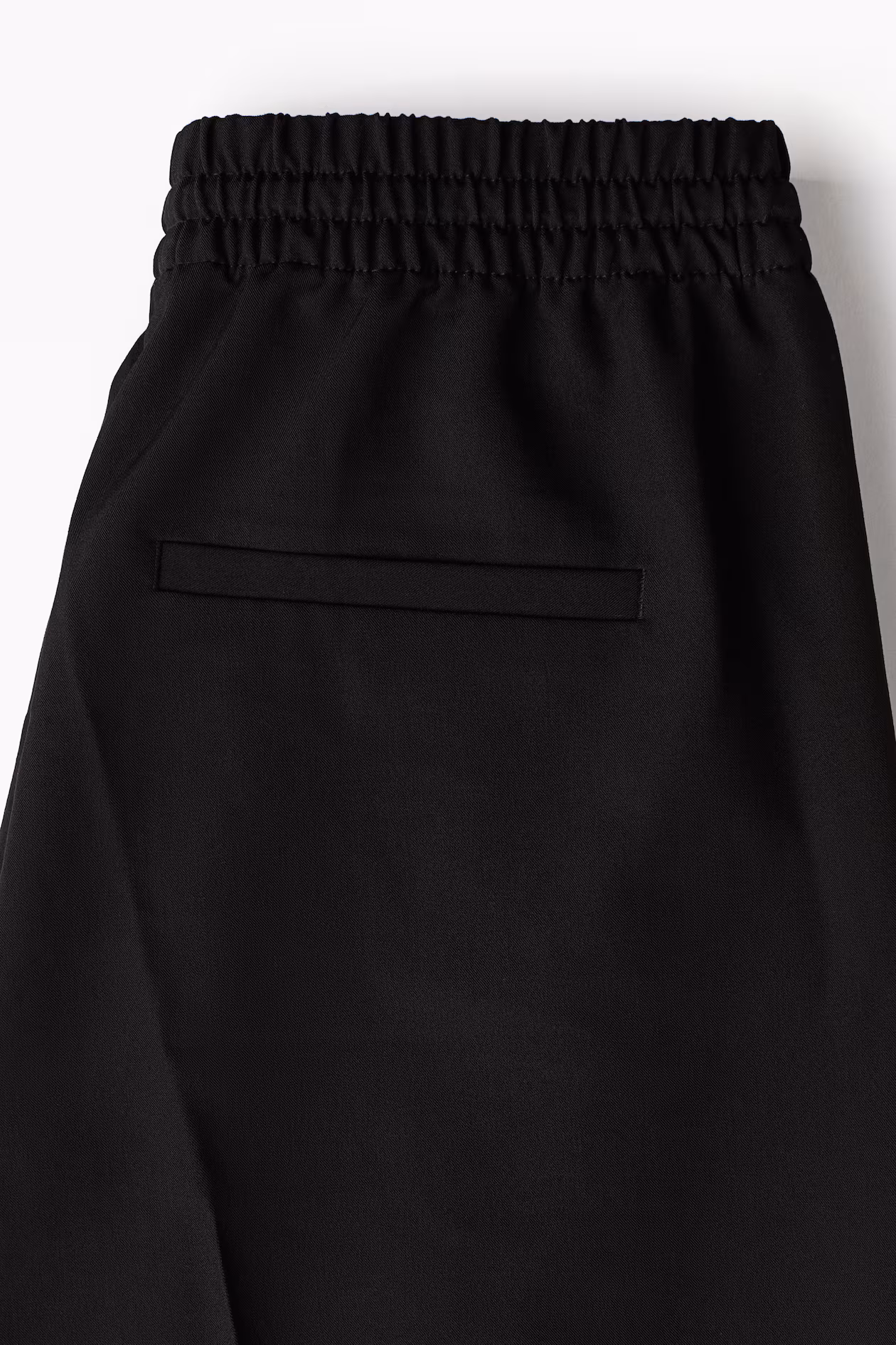 Loose-fit dress pants in woven fabric with a high waist. Narrow drawstring and covered elastic at waistband. Discreet side pockets and mock welt back pockets. Wide legs with stitched creases at front and pressed creases at back.
