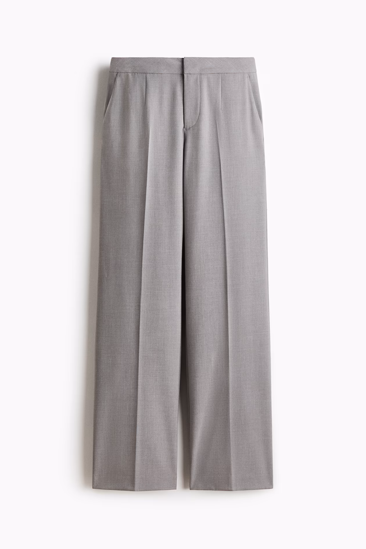 Dress pants in woven fabric with creases at front and back. High waist, concealed hook-and-bar fastening, zip fly, and diagonal side pockets. Straight legs.