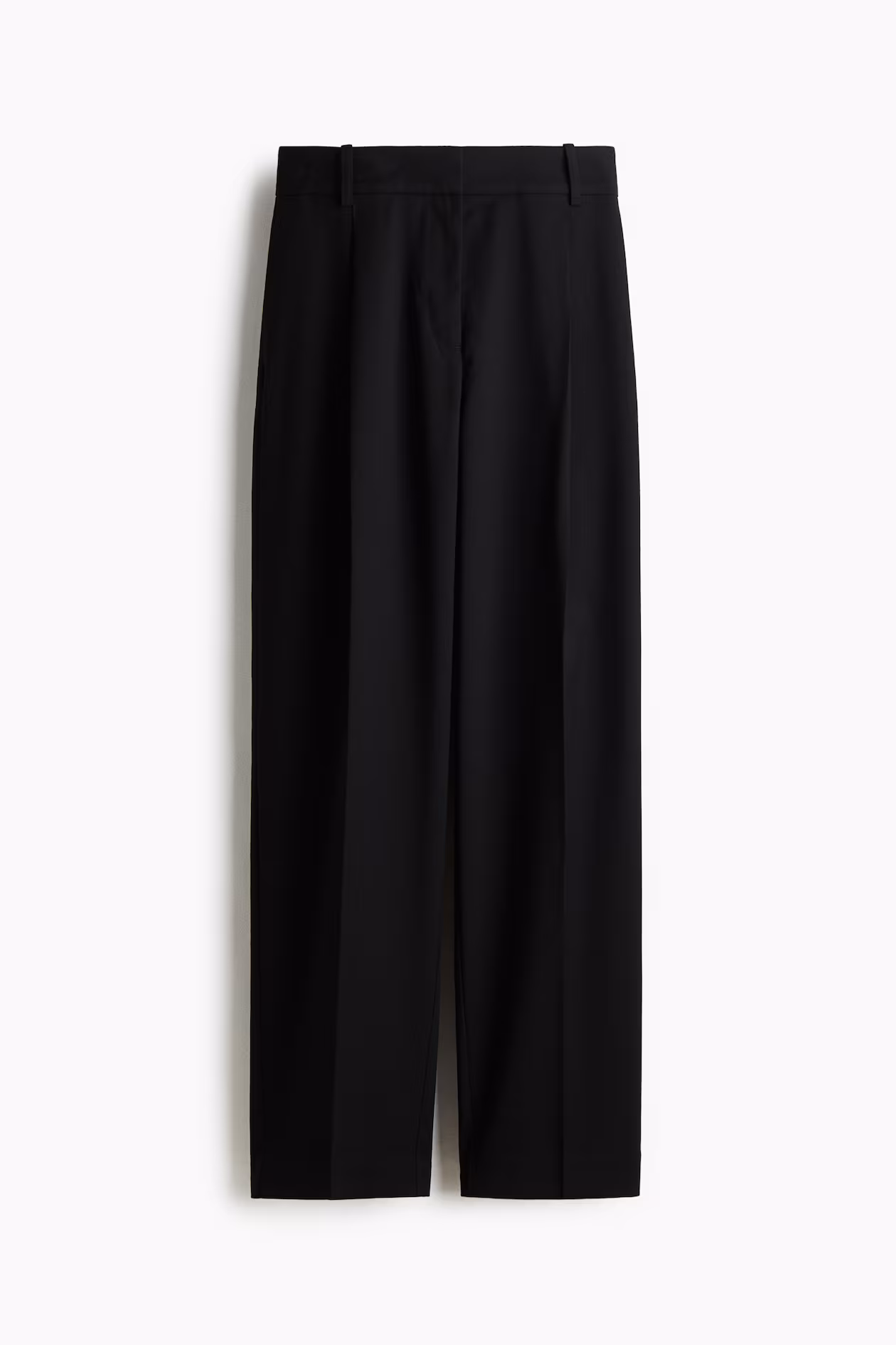 Loose-fit dress pants in woven fabric with pleats at front. High waist and zip fly with concealed button and hook-and-bar fastening. Discreet side pockets, mock welt back pockets, and tapered legs with creases at front and back.