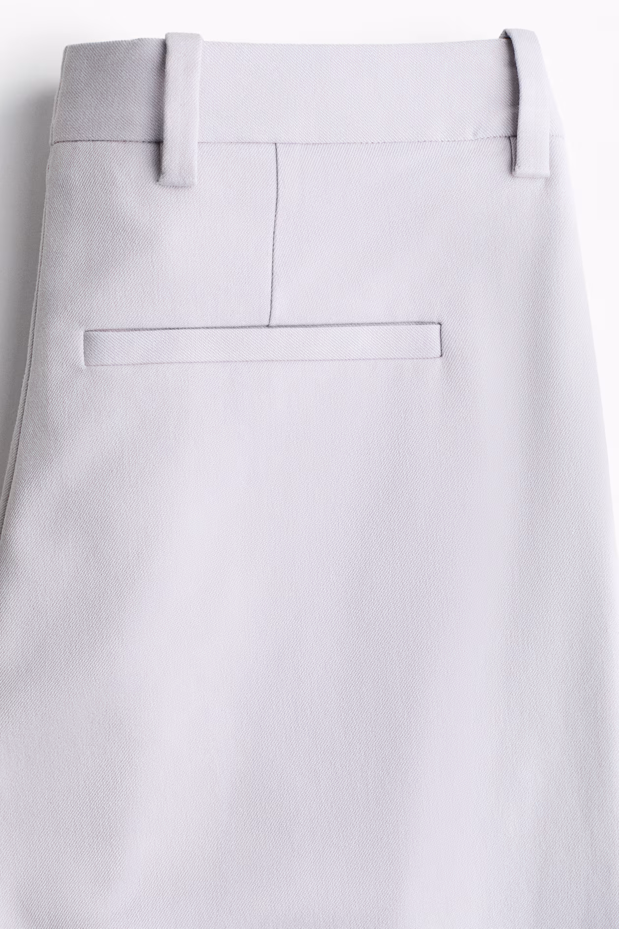 Dress pants in woven fabric. Low waist, concealed button and hook-and-bar fastener, and a zip fly. Diagonal side pockets, one welt back pocket, and straight legs with pleats and creases at front.
