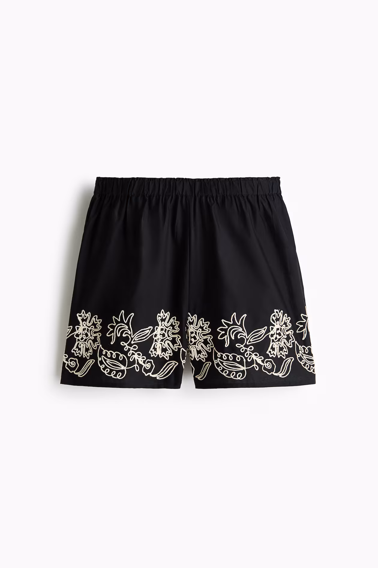 Loose-fit shorts in crisp cotton poplin with embroidered details. Regular waist and covered elastic at waistband.