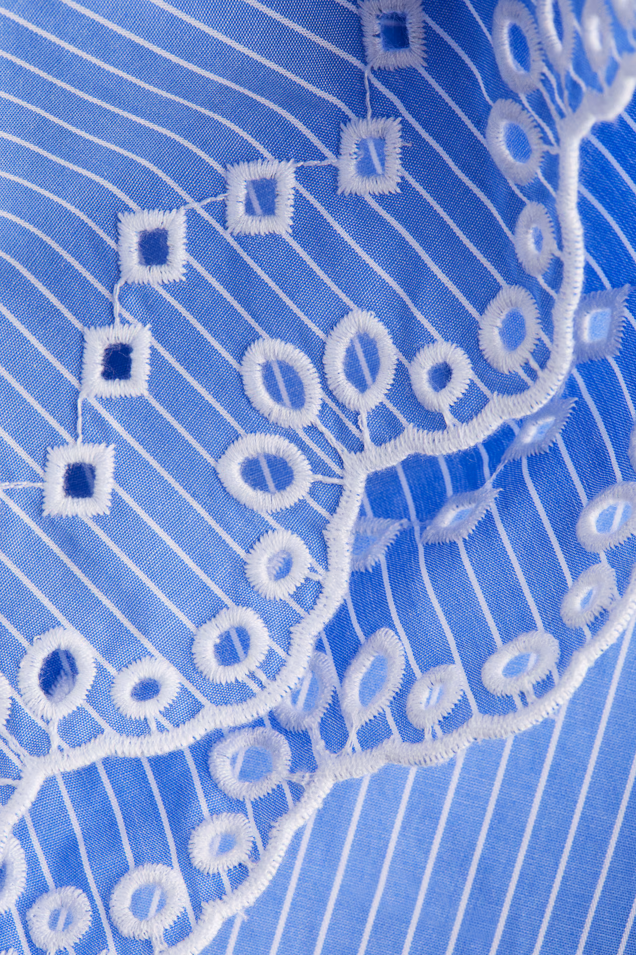 Blouse in woven cotton. Band collar, V-shaped opening at front, and short puff sleeves with eyelet embroidery and scalloped-edge cuffs.