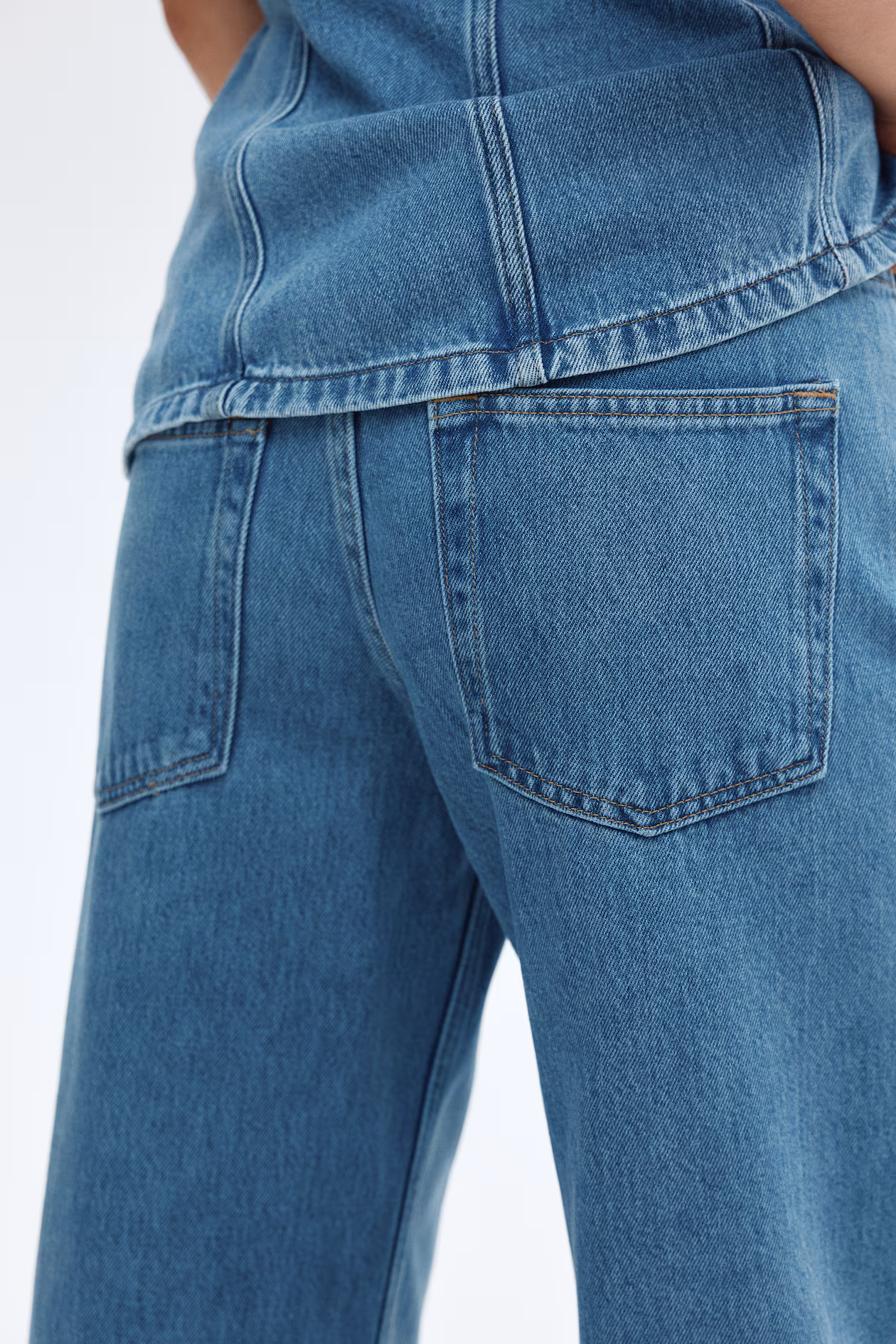 5-pocket jeans in supersoft, featherlight denim. Regular fit from waist to hip and wide cut from thigh to hem. Regular waist and zip fly with button. Wide, longer legs, designed to fall over foot with a stacking effect. Effortlessly flattering no matter how they're styled.
