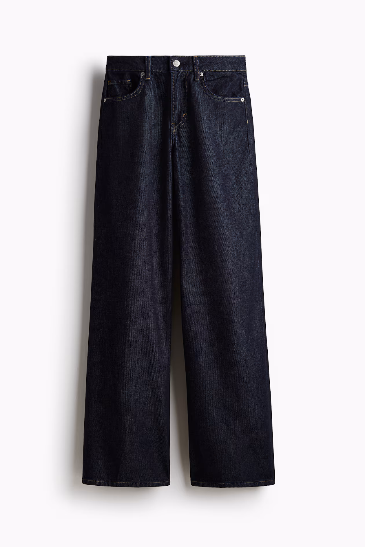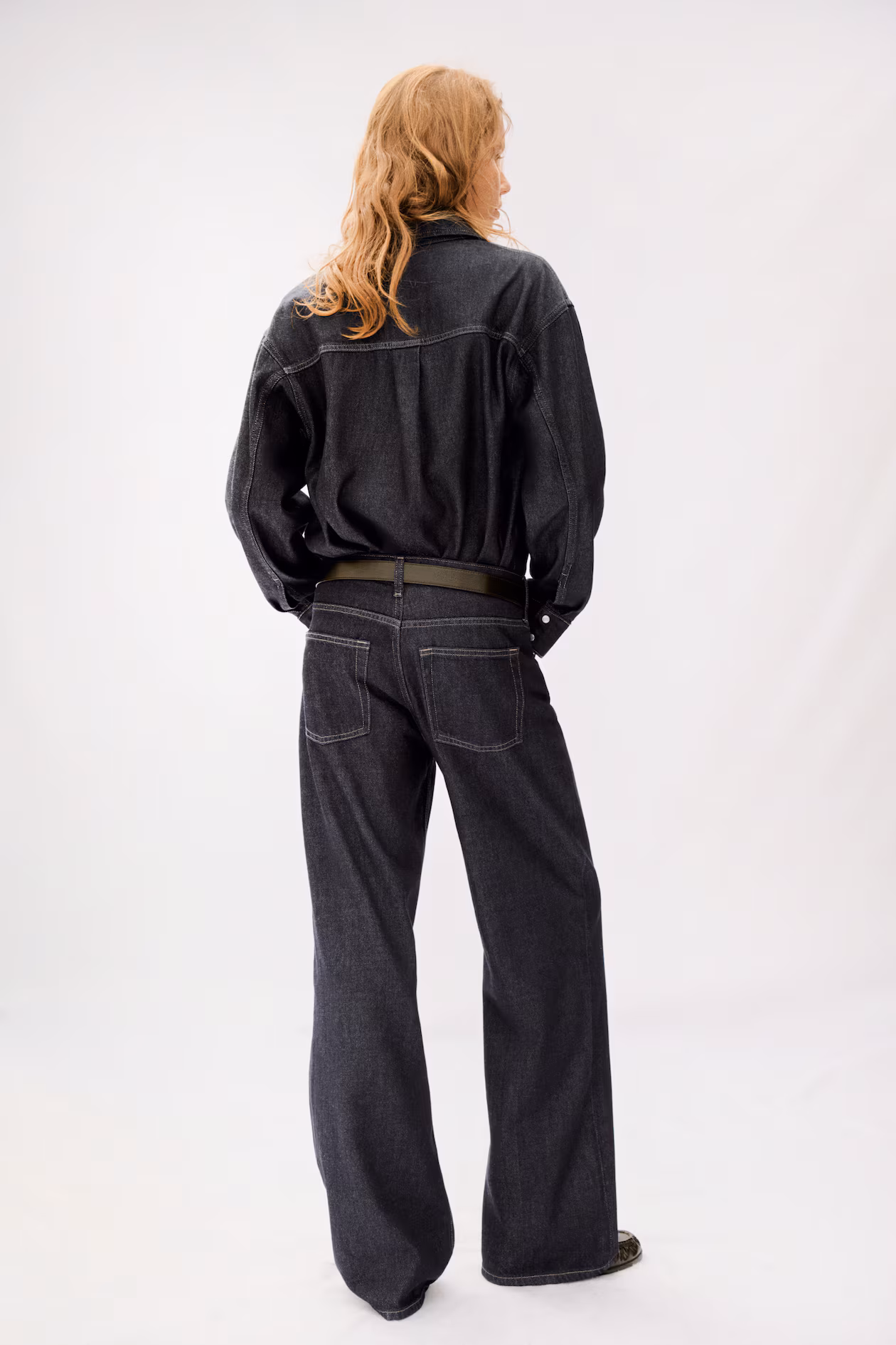 5-pocket jeans in supersoft, featherlight denim. Regular fit from waist to hip and wide cut from thigh to hem. Regular waist and zip fly with button. Wide, longer legs, designed to fall over foot with a stacking effect. Effortlessly flattering no matter how they're styled.