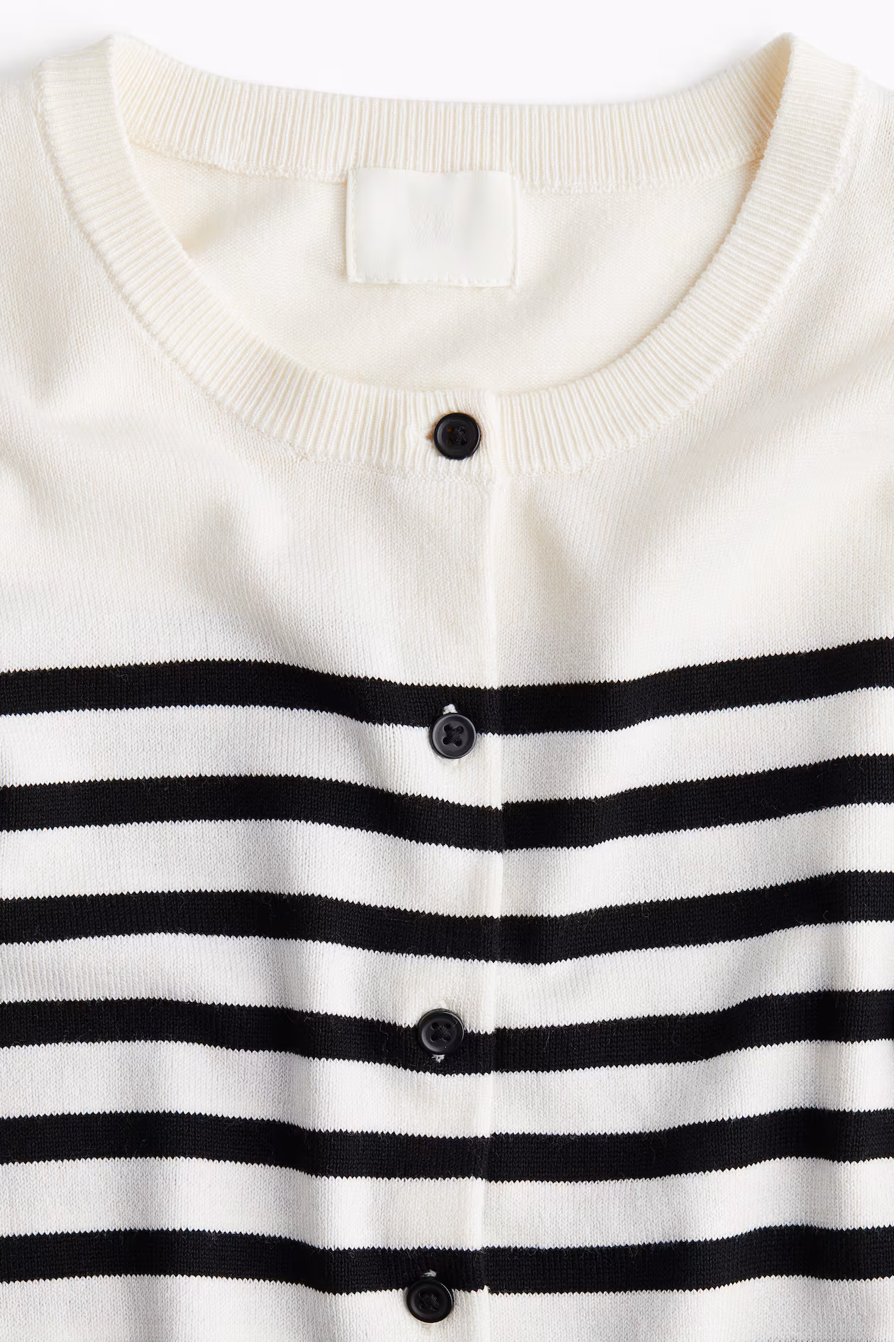 Fine-knit cardigan in a soft viscose blend. Buttons at front and ribbing at neckline, cuffs, and hem.