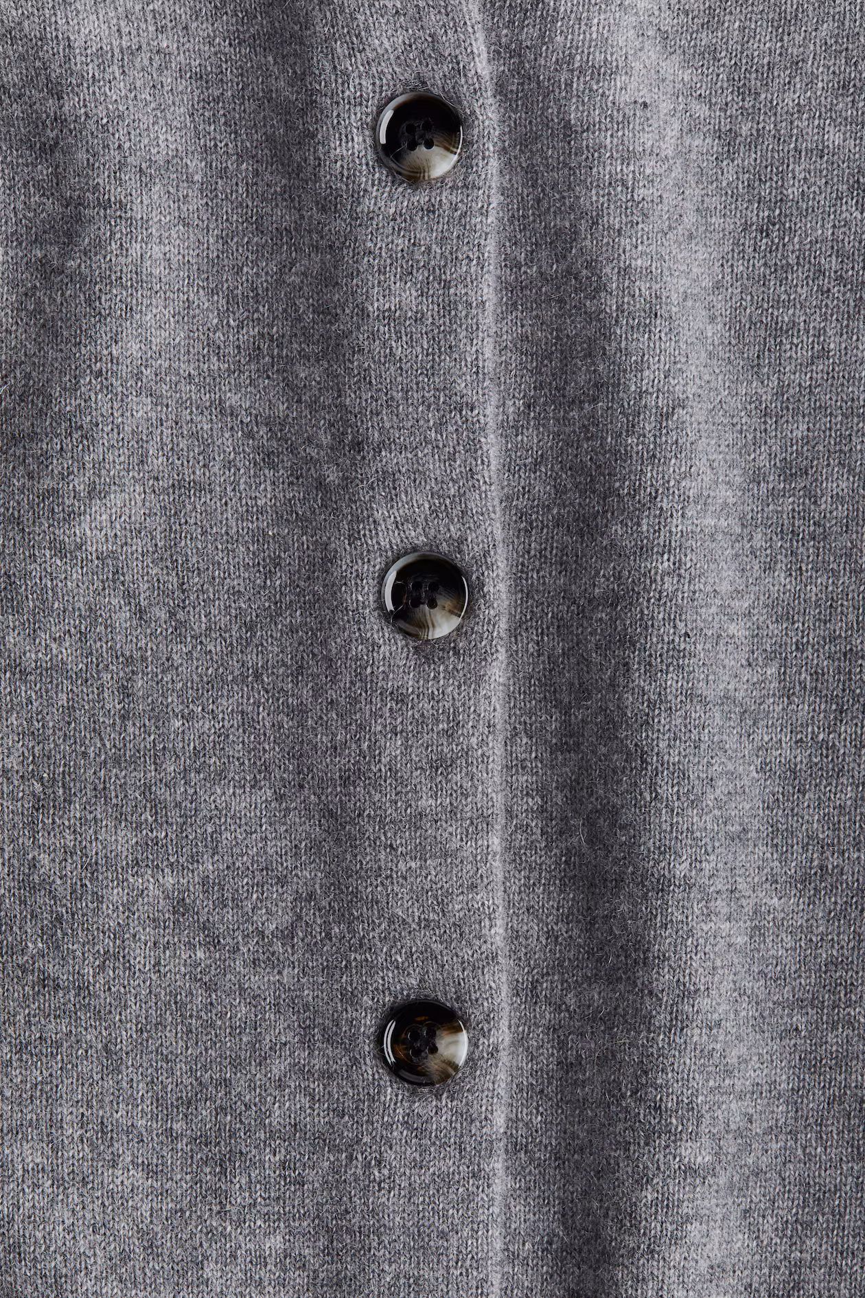 Cardigan in soft, fine-knit cashmere. Round neckline, buttons at front, and ribbing at neckline, cuffs, and hem.
