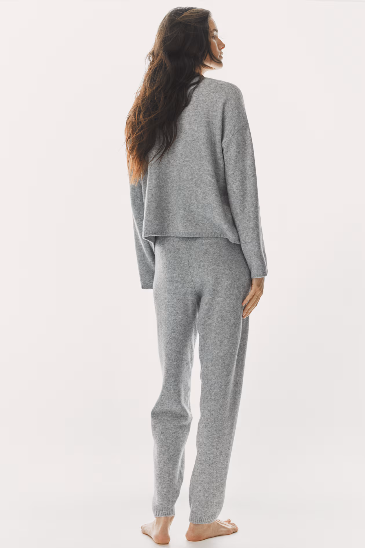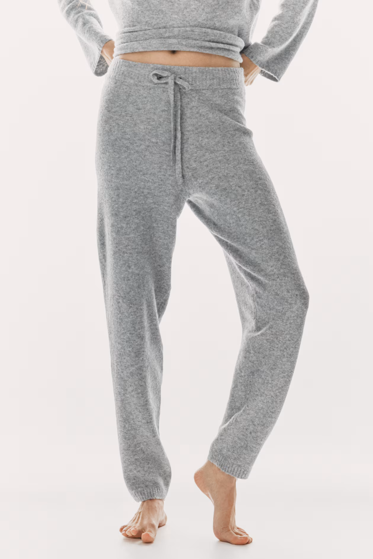 Fine-knit joggers in soft, lightly brushed fabric with wool content. High waist, waistband with drawstring and covered elastic, and tapered legs with ribbed hems.