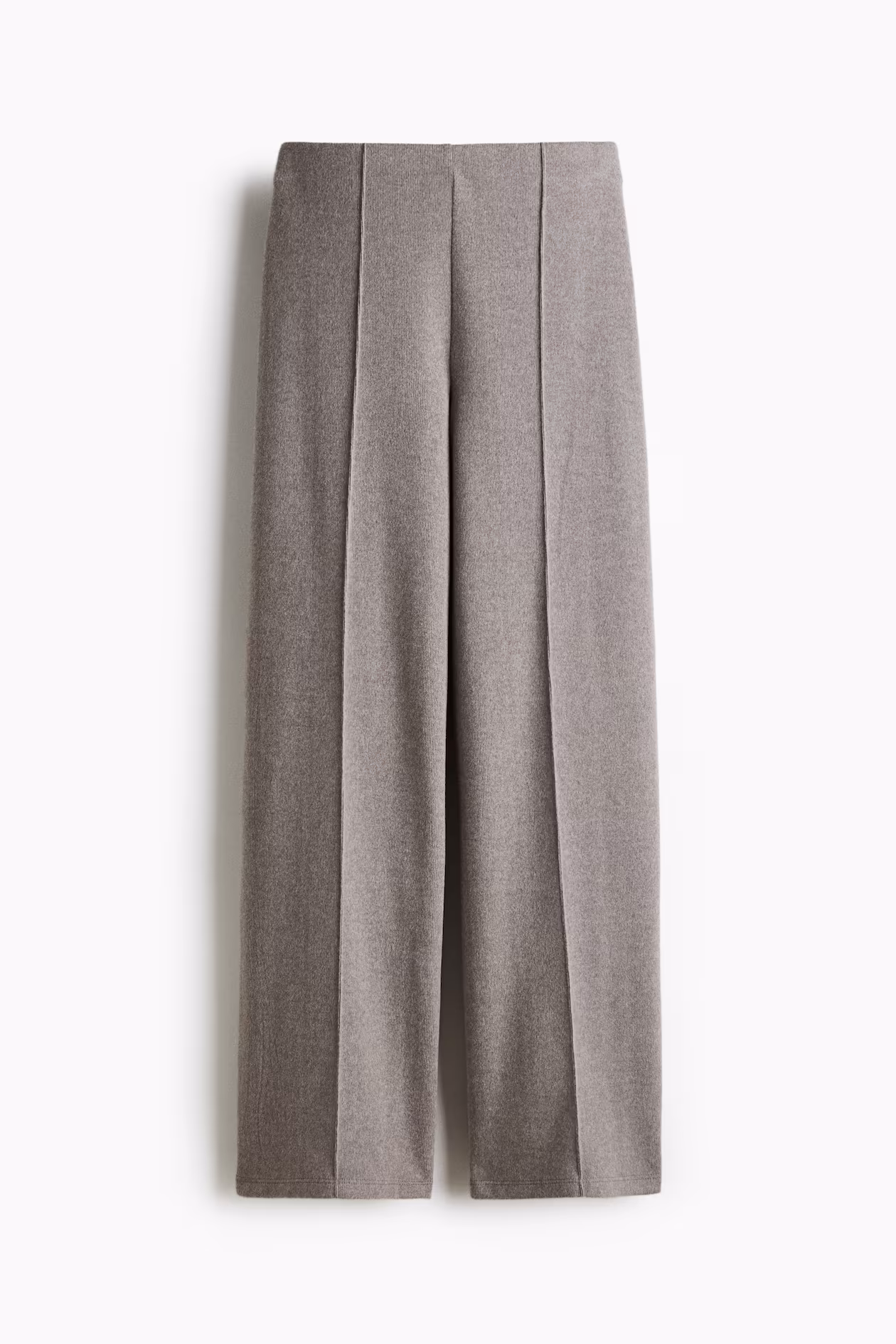 Loose-fit pants in a fine-knit cotton blend. High waist, concealed elastic at waistband, and stitched creases at front.