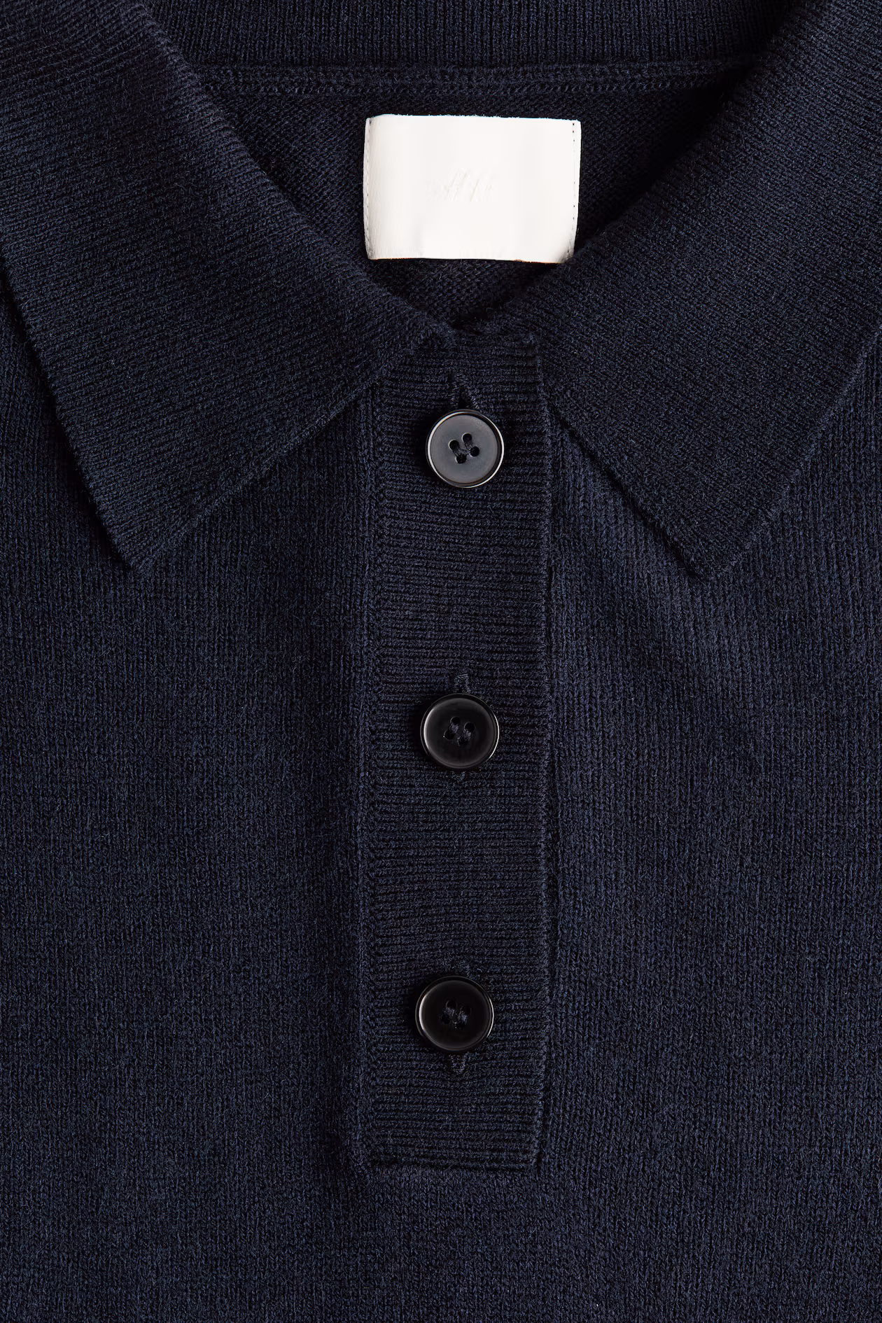 Short, fitted dress in a fine knit. Collar, button placket, and short sleeves. Narrow trim at cuffs and hem.