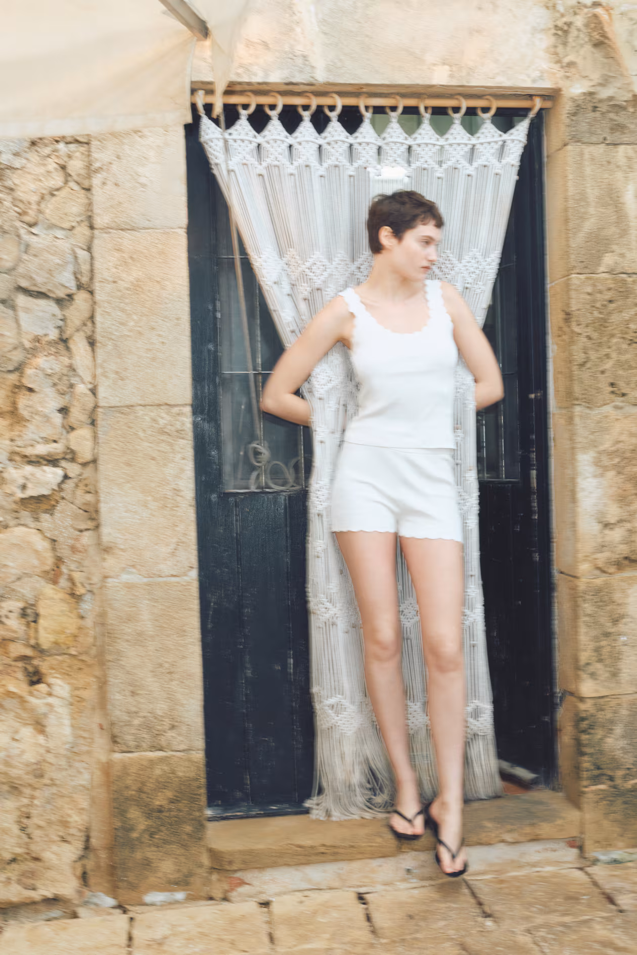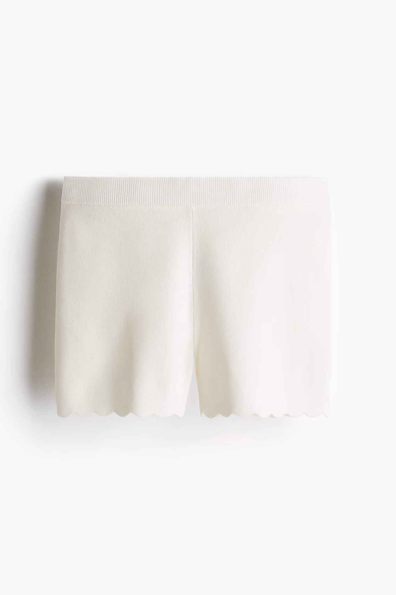 Fitted shorts in a soft, fine knit. High waist, elasticized waistband, and scalloped-edge hems.