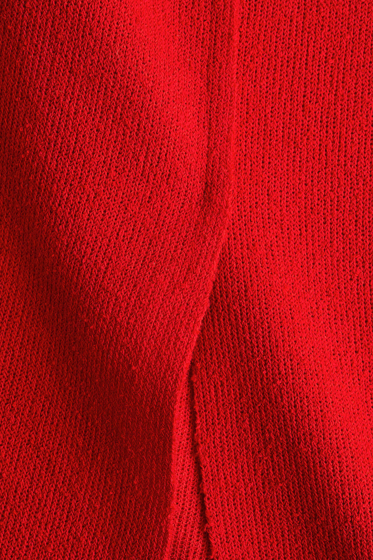 Fine-knit, calf-length skirt with a high waist and elasticized waistband. Visible, vertical seams at front, one finishing in a slit.