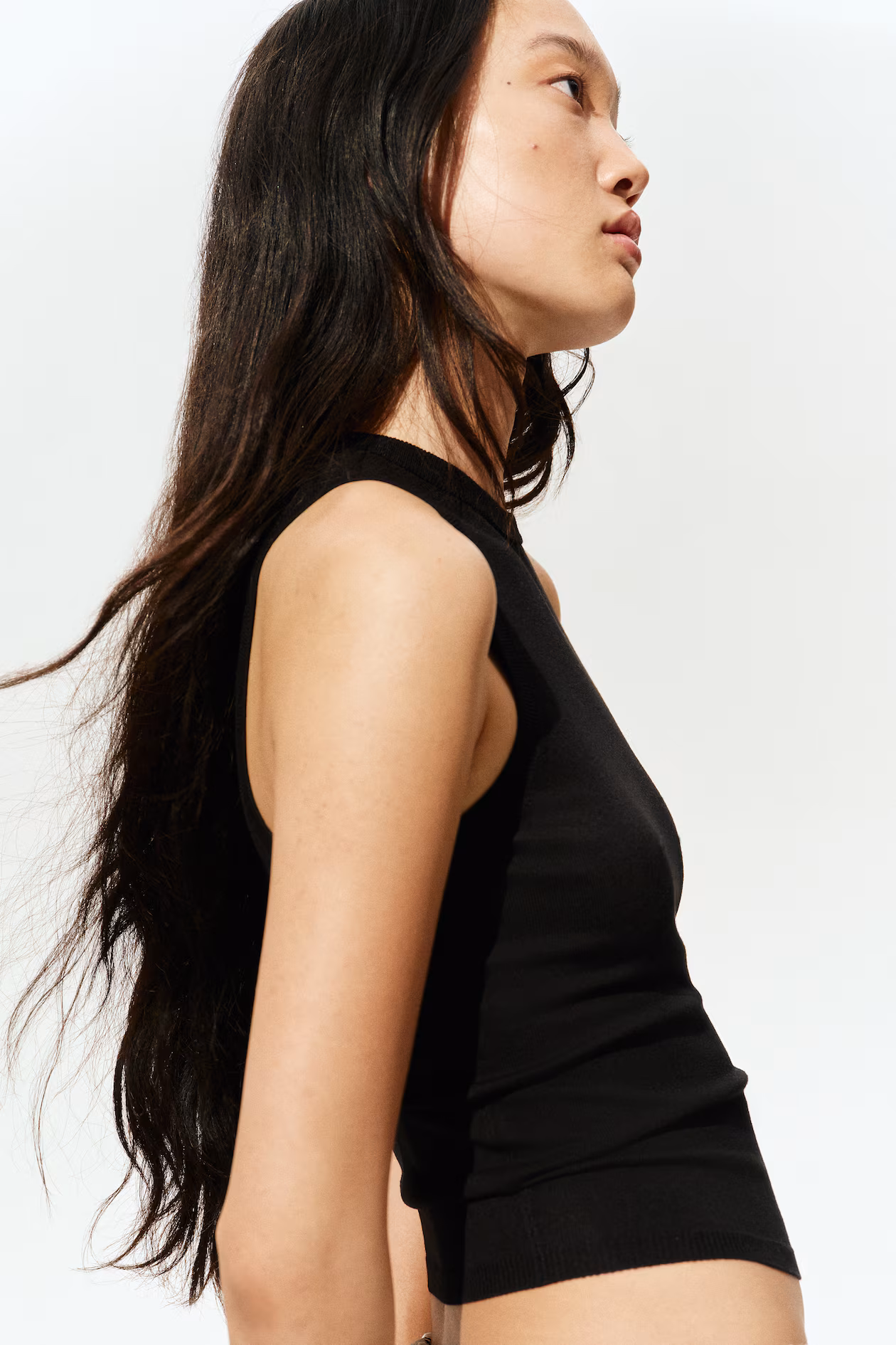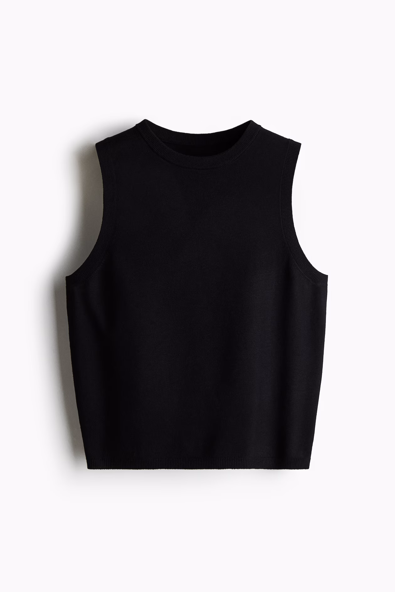 Fitted sweater vest in a soft, fine-knit viscose blend. Round neckline and ribbing at neckline, armholes, and hem.