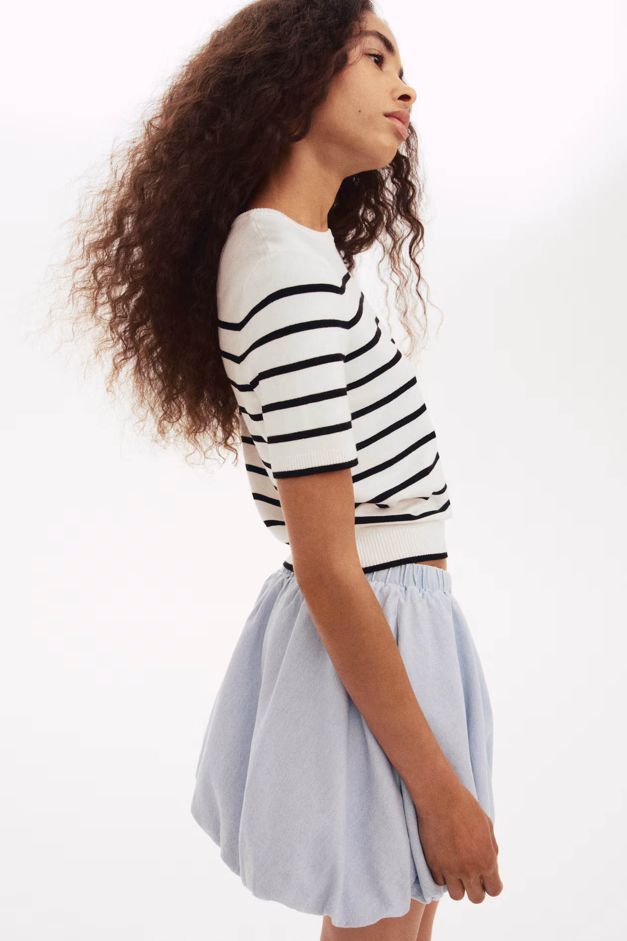 Short, fitted T-shirt in a soft, fine knit. Ribbing at neckline, cuffs, and hem.