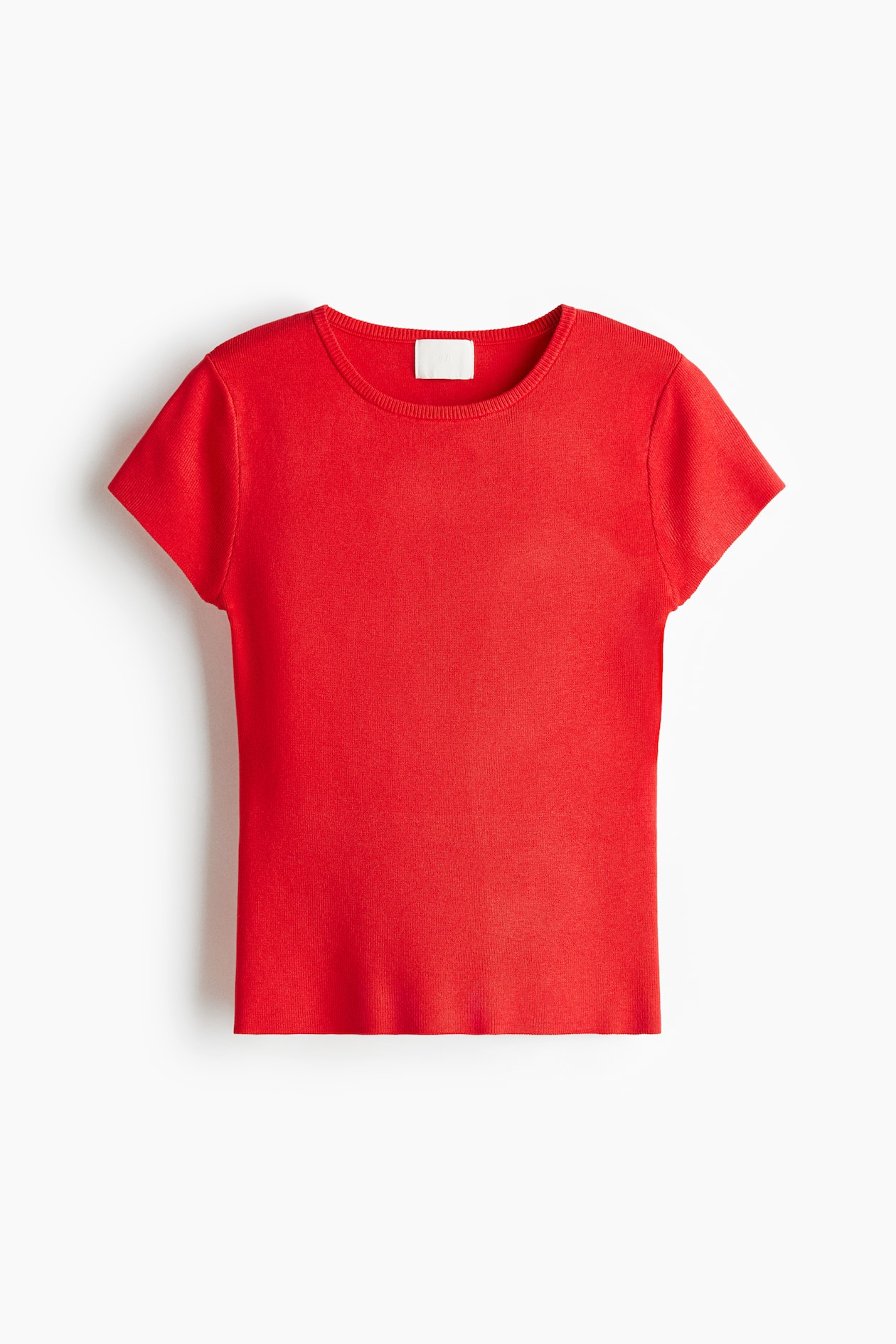 Short, fitted T-shirt in a soft, fine knit with a round, ribbed neckline.