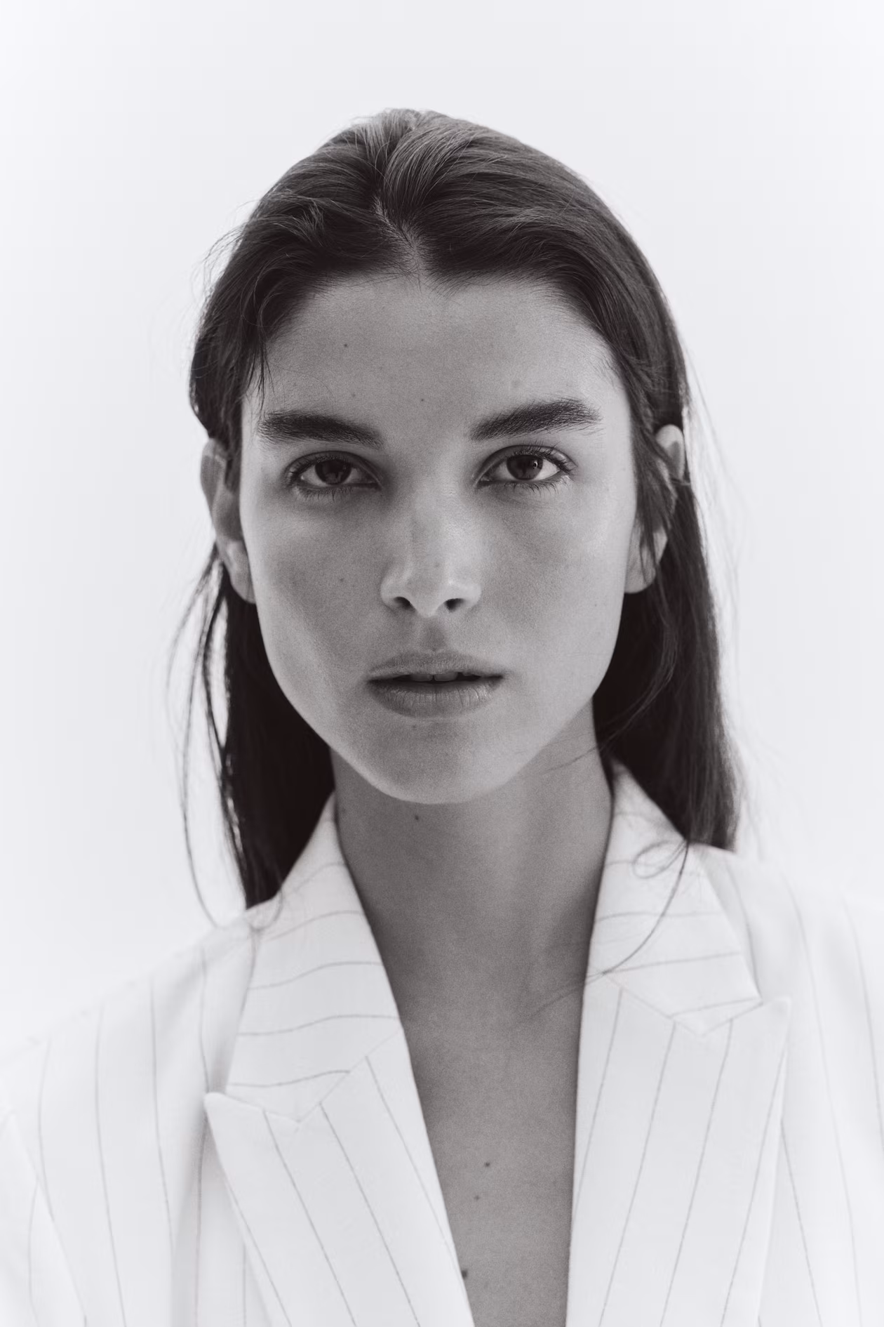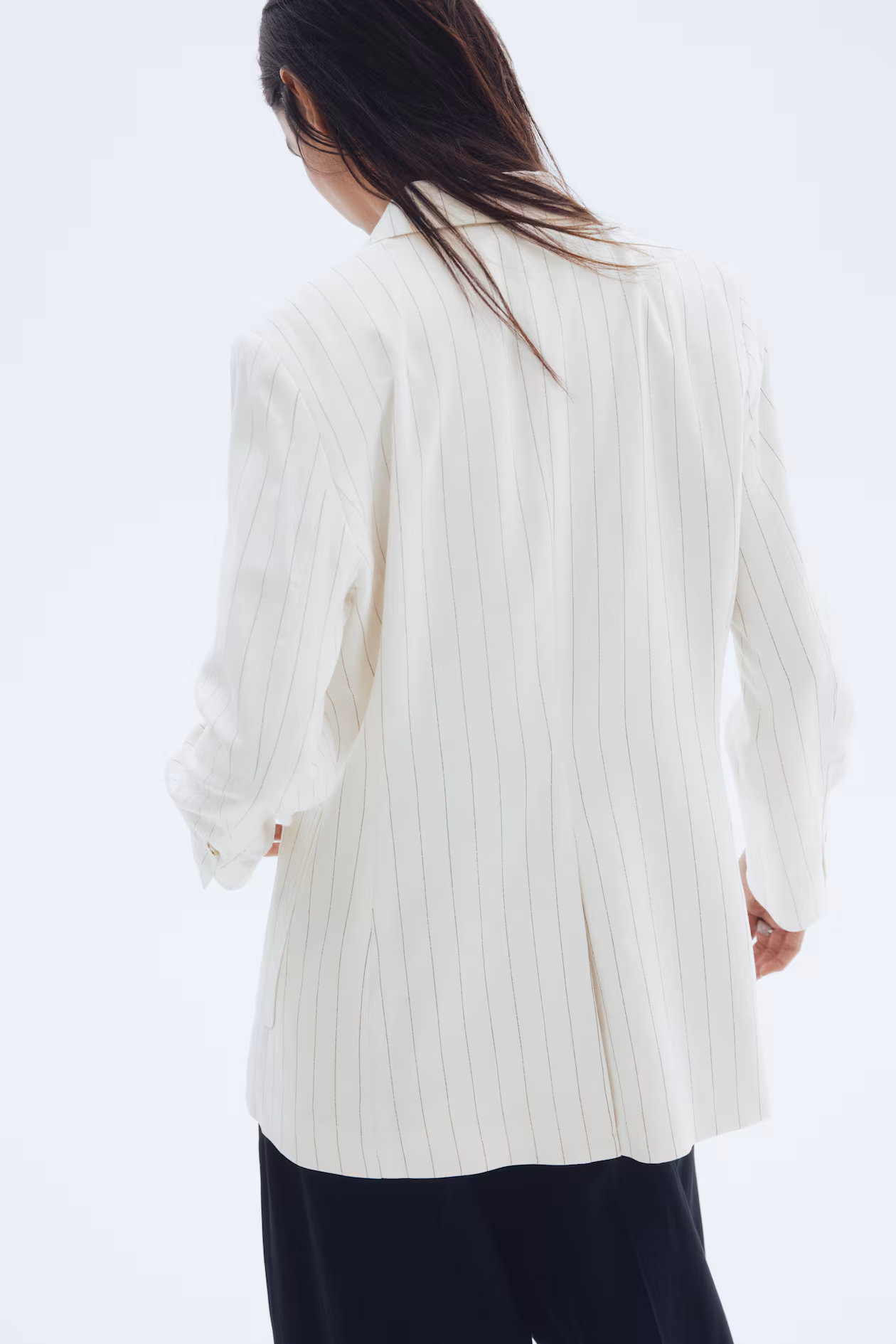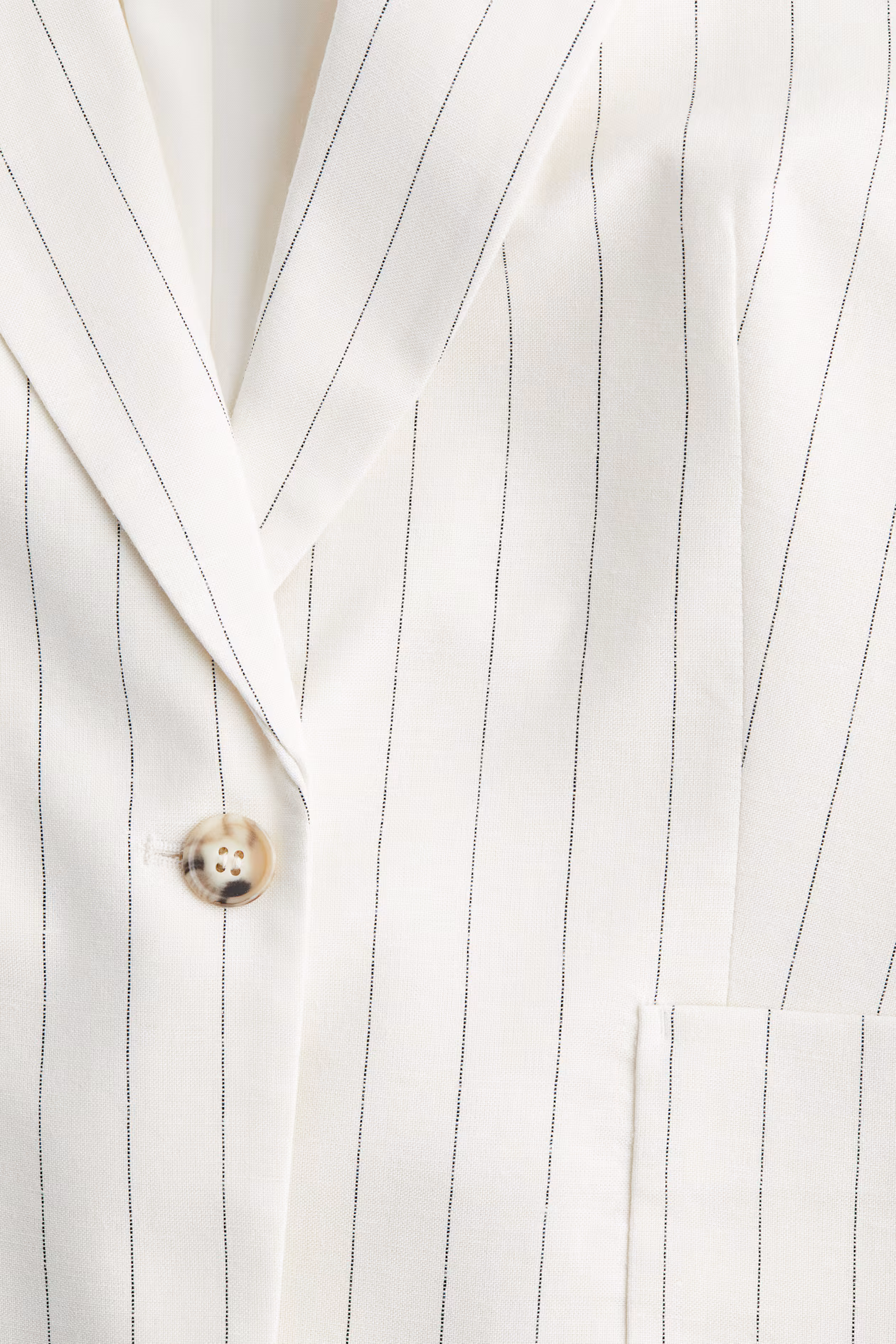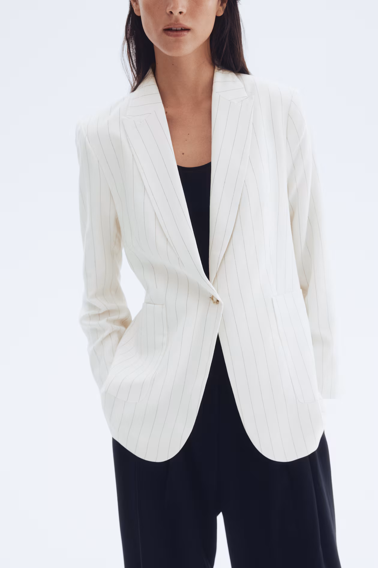 Fitted, single-breasted blazer in woven fabric. Pointed lapels, a button at front, and patch front pockets. Shoulder pads, a slit and button at cuffs, and a vent at back. Lined.