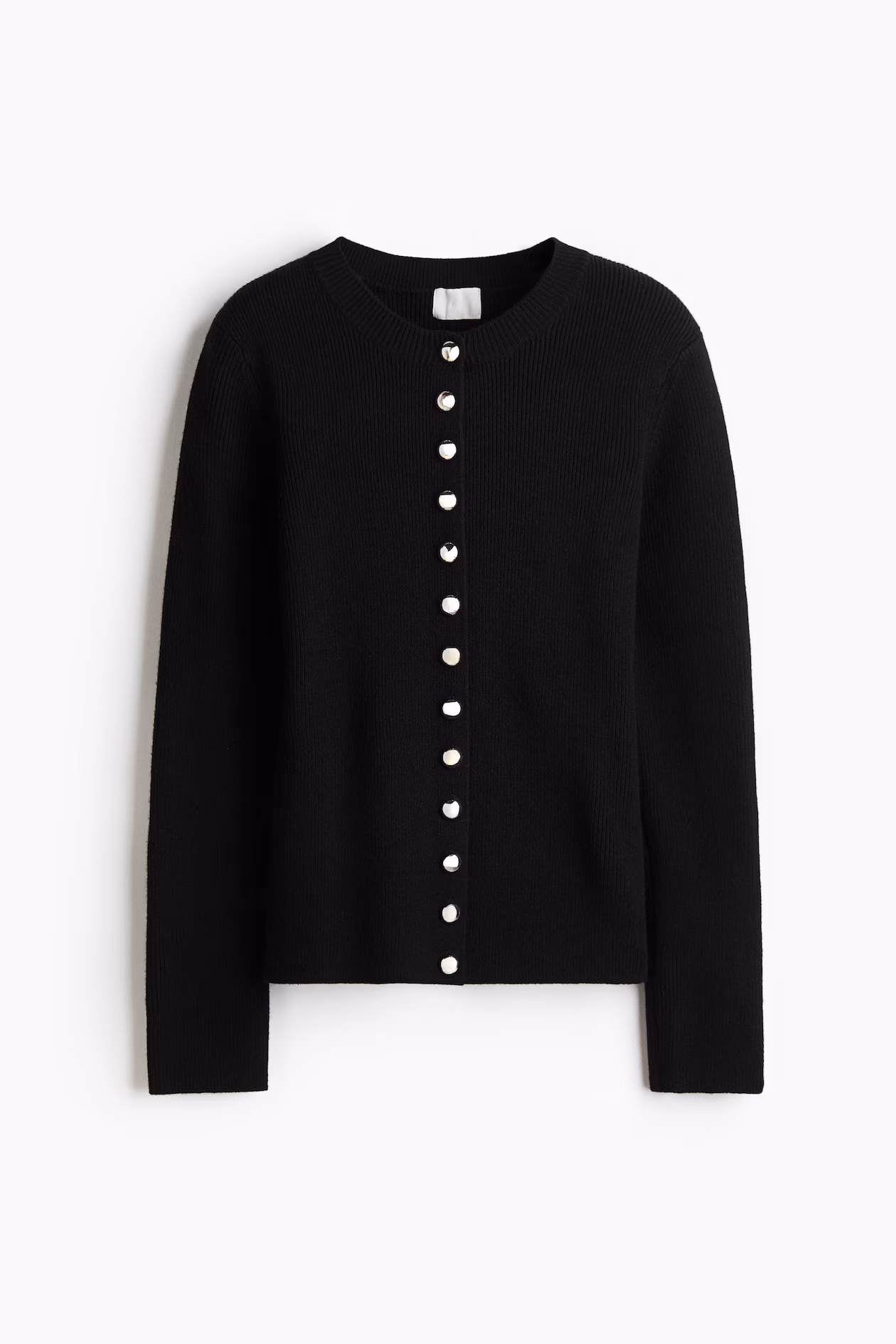 Fitted cardigan in a soft knit. Round neckline and metal buttons at front.