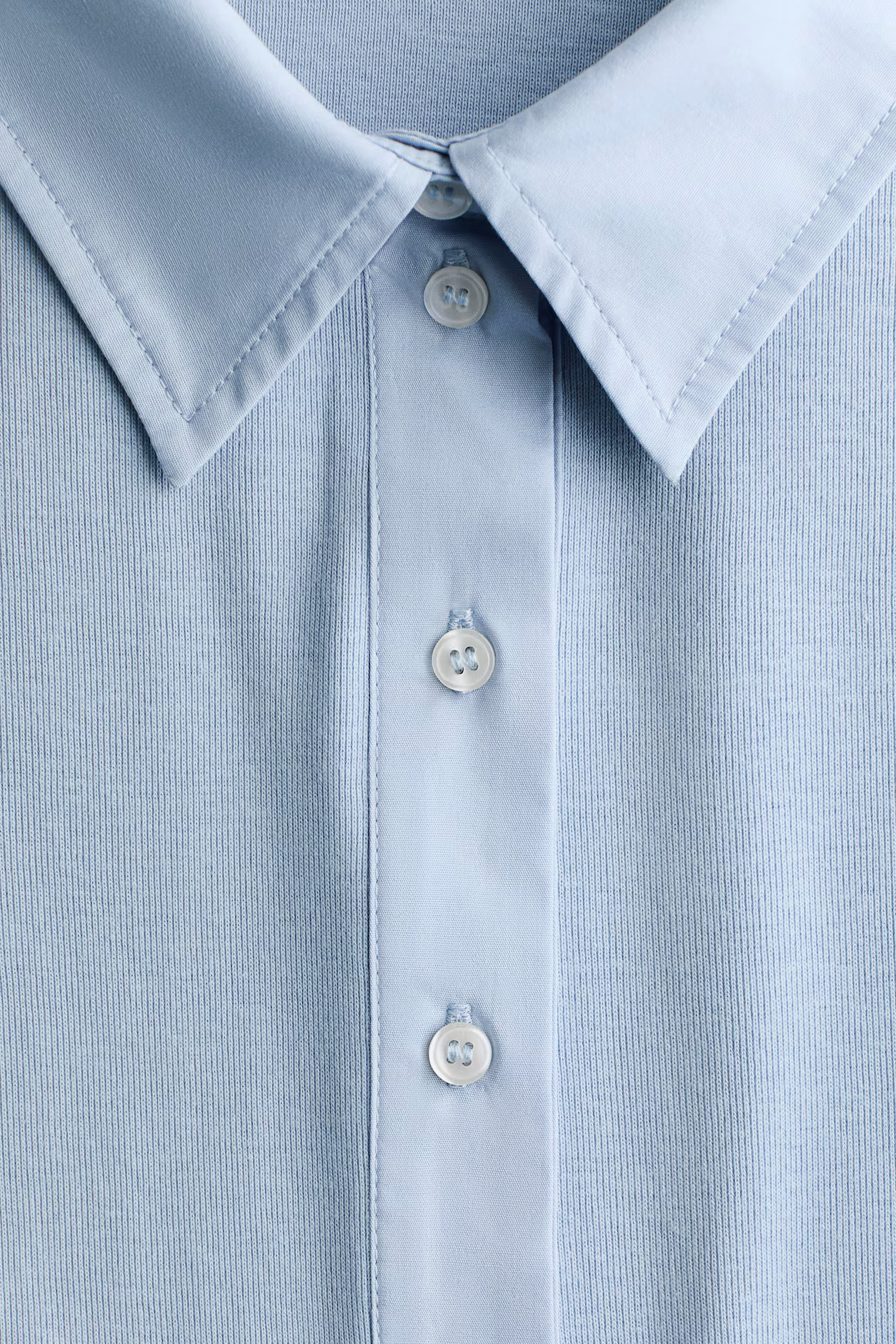 Fitted top in cotton jersey with collar and placket in woven fabric. Yoke at back, long sleeves, and shaping seams at front.