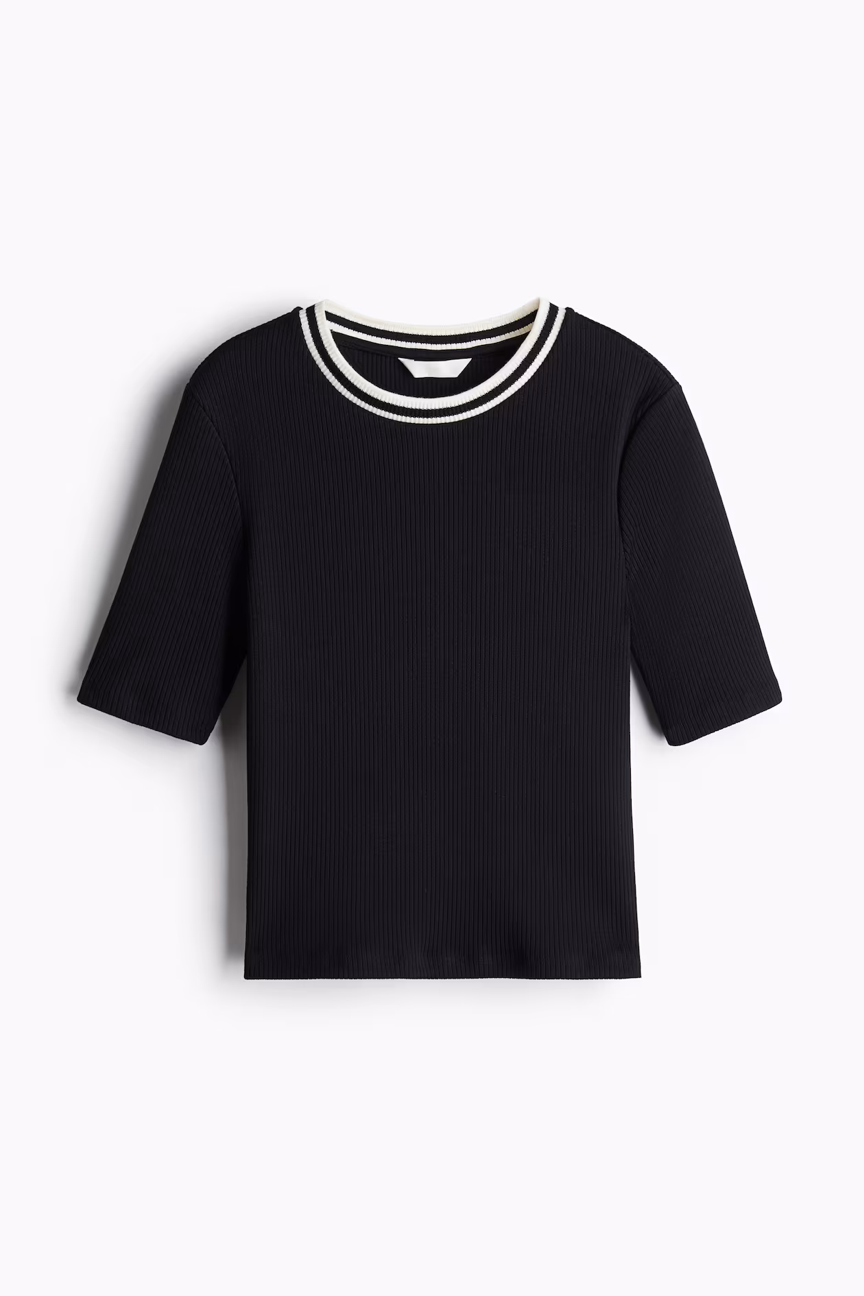 Fitted T-shirt in jersey. Crew neck, close-fitting sleeves, and a straight-cut hem.