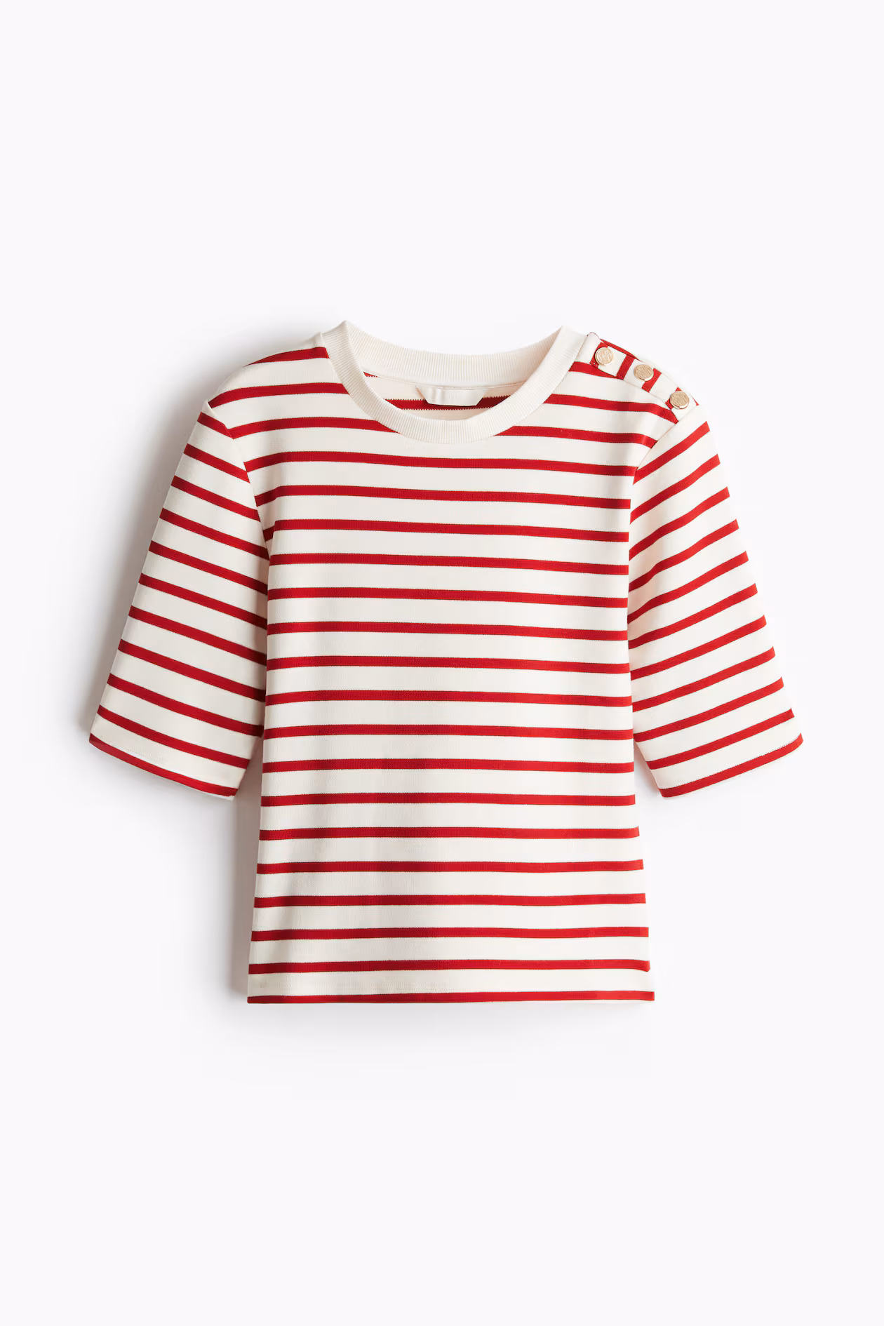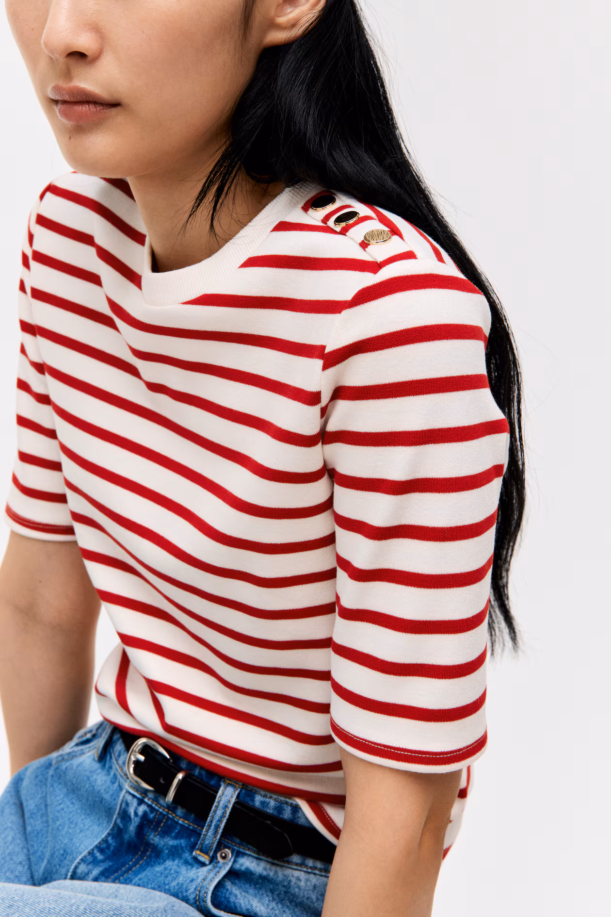 Fitted T-shirt in jersey. Crew neck, close-fitting sleeves, and a straight-cut hem.