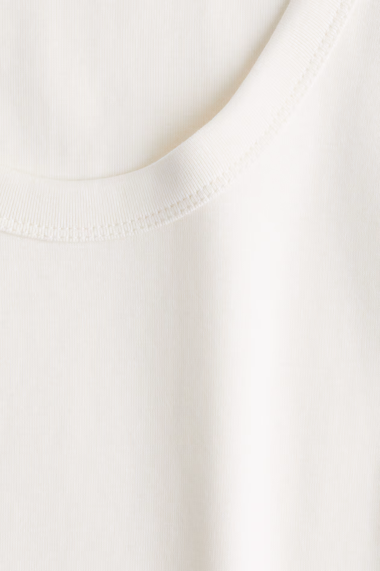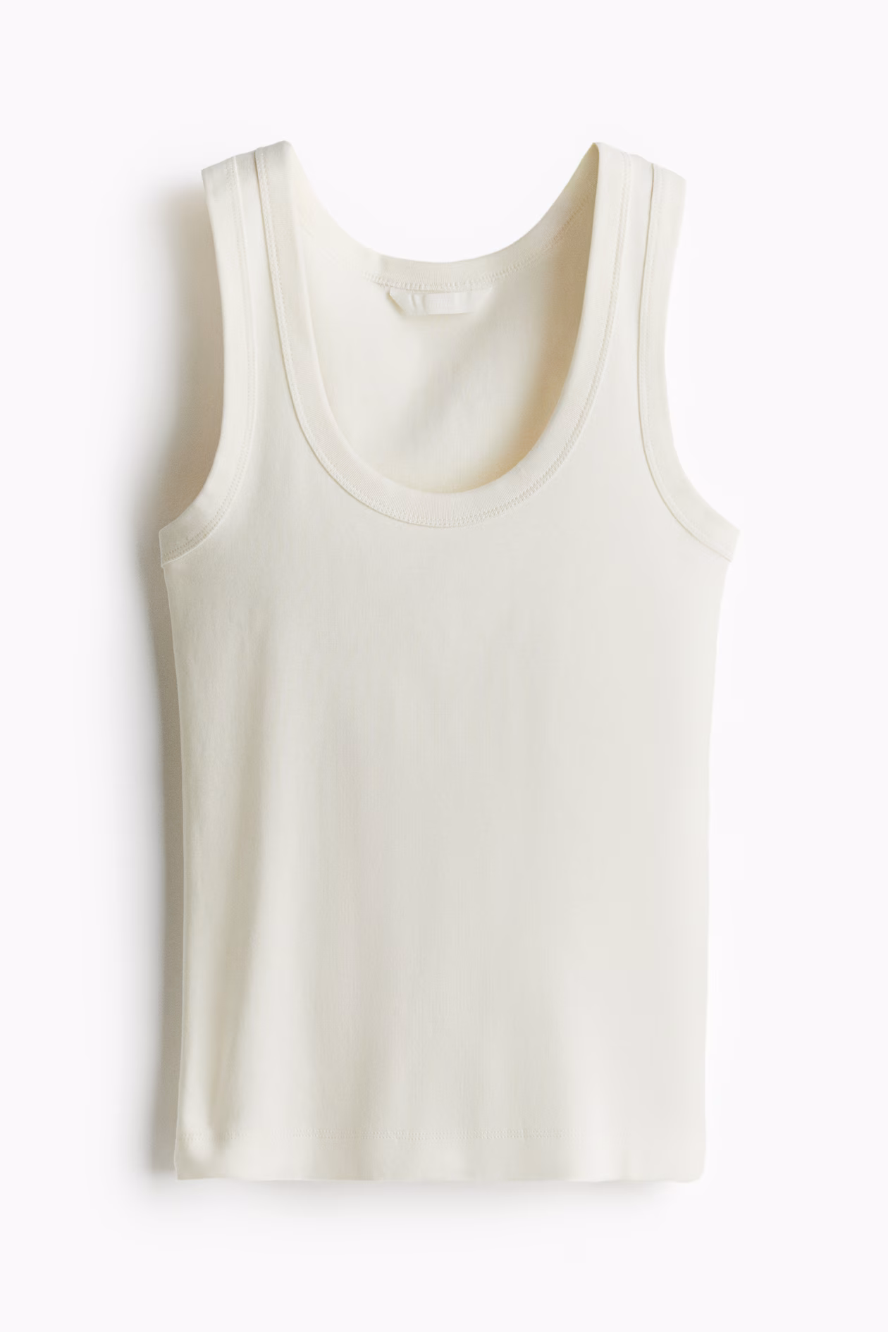 Fitted tank top in soft cotton jersey. Low-cut scoop neck at front.