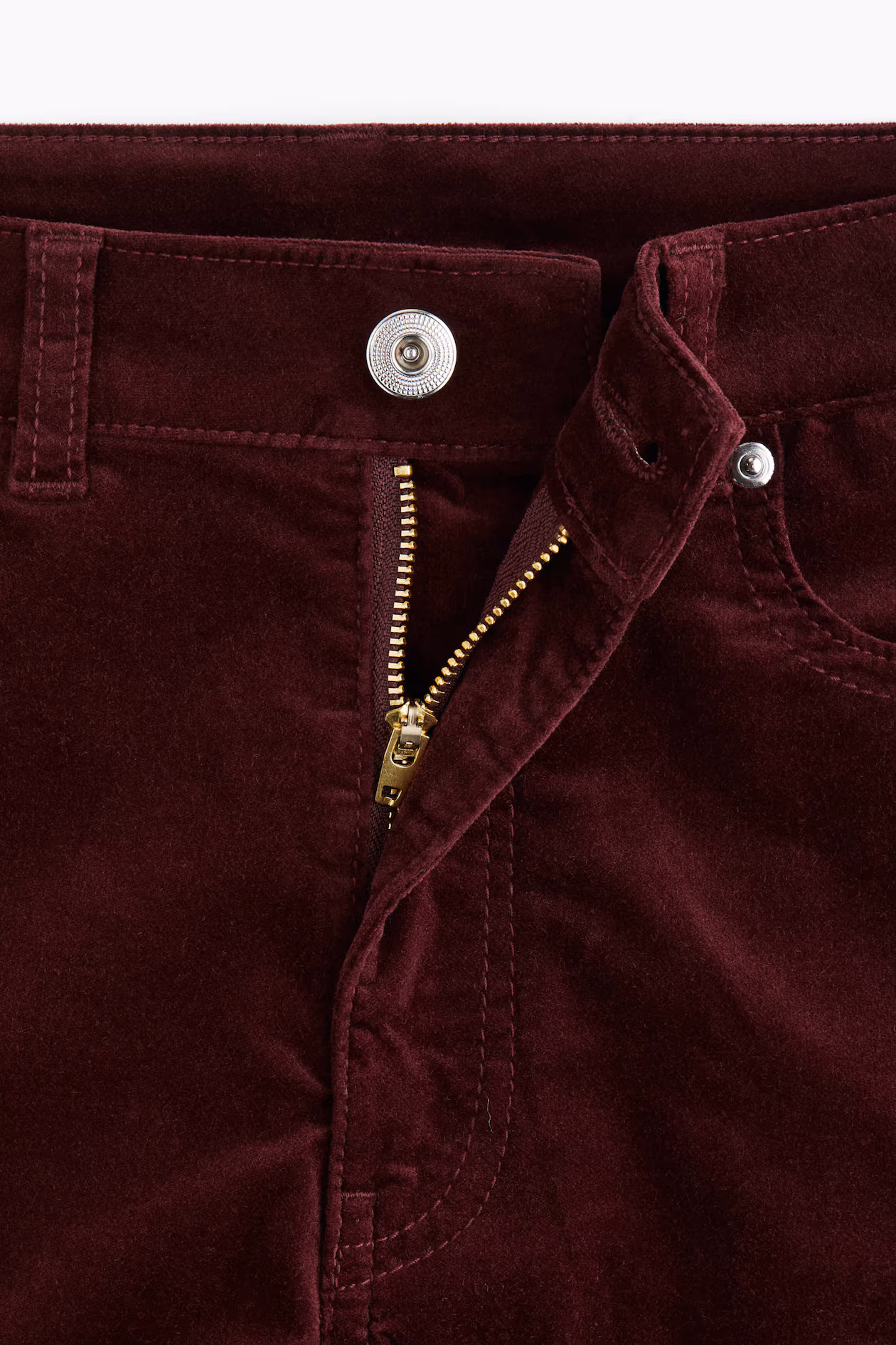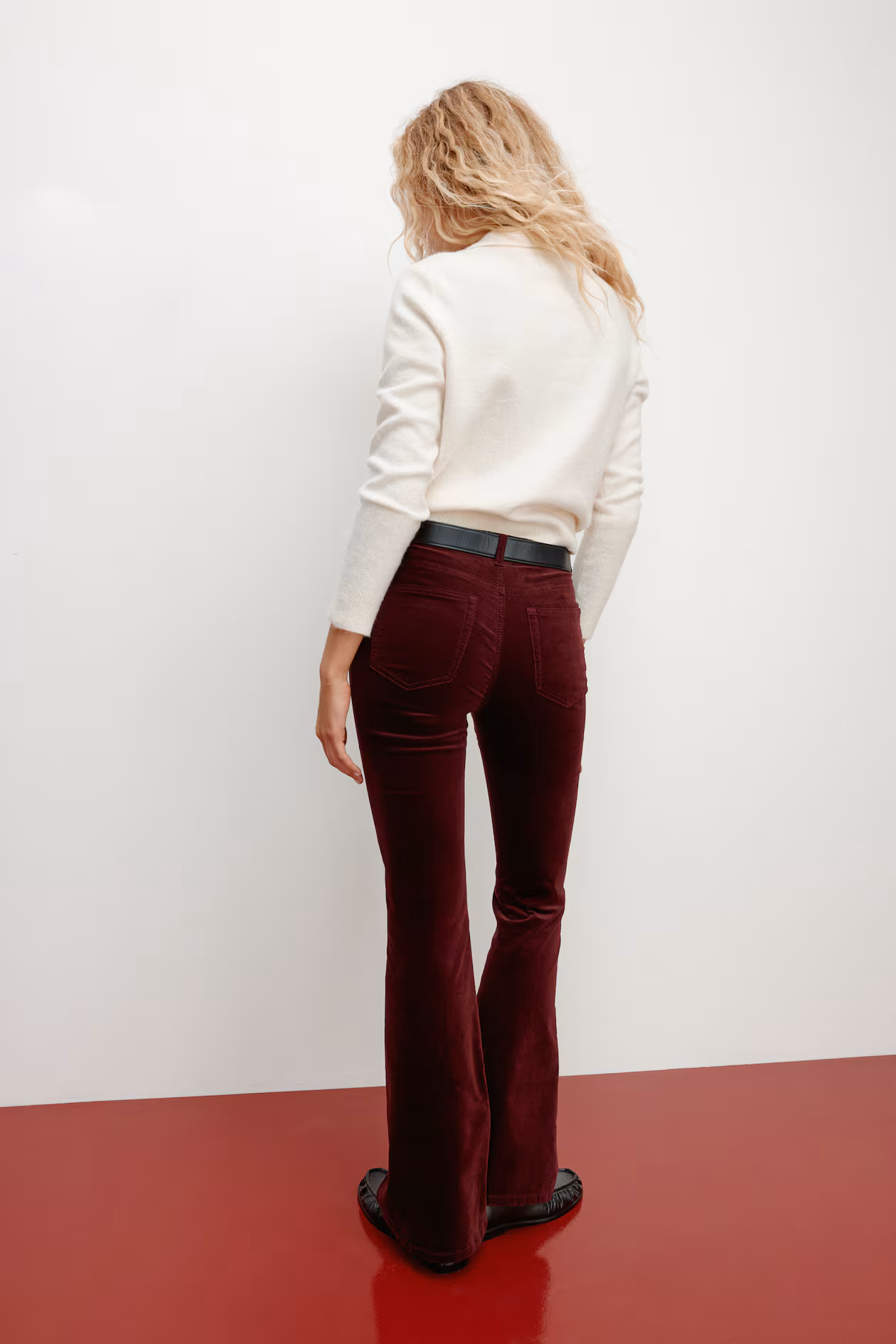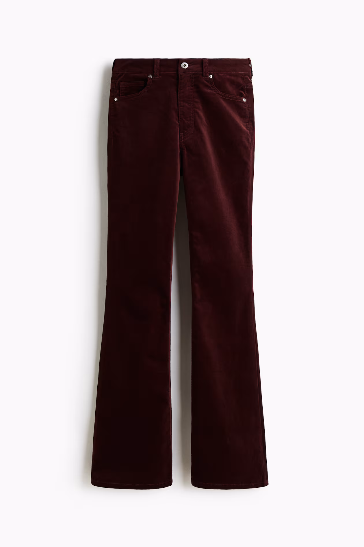 5-pocket, slim-fit pants in soft corduroy. High waist, zip fly with button, and flared legs.