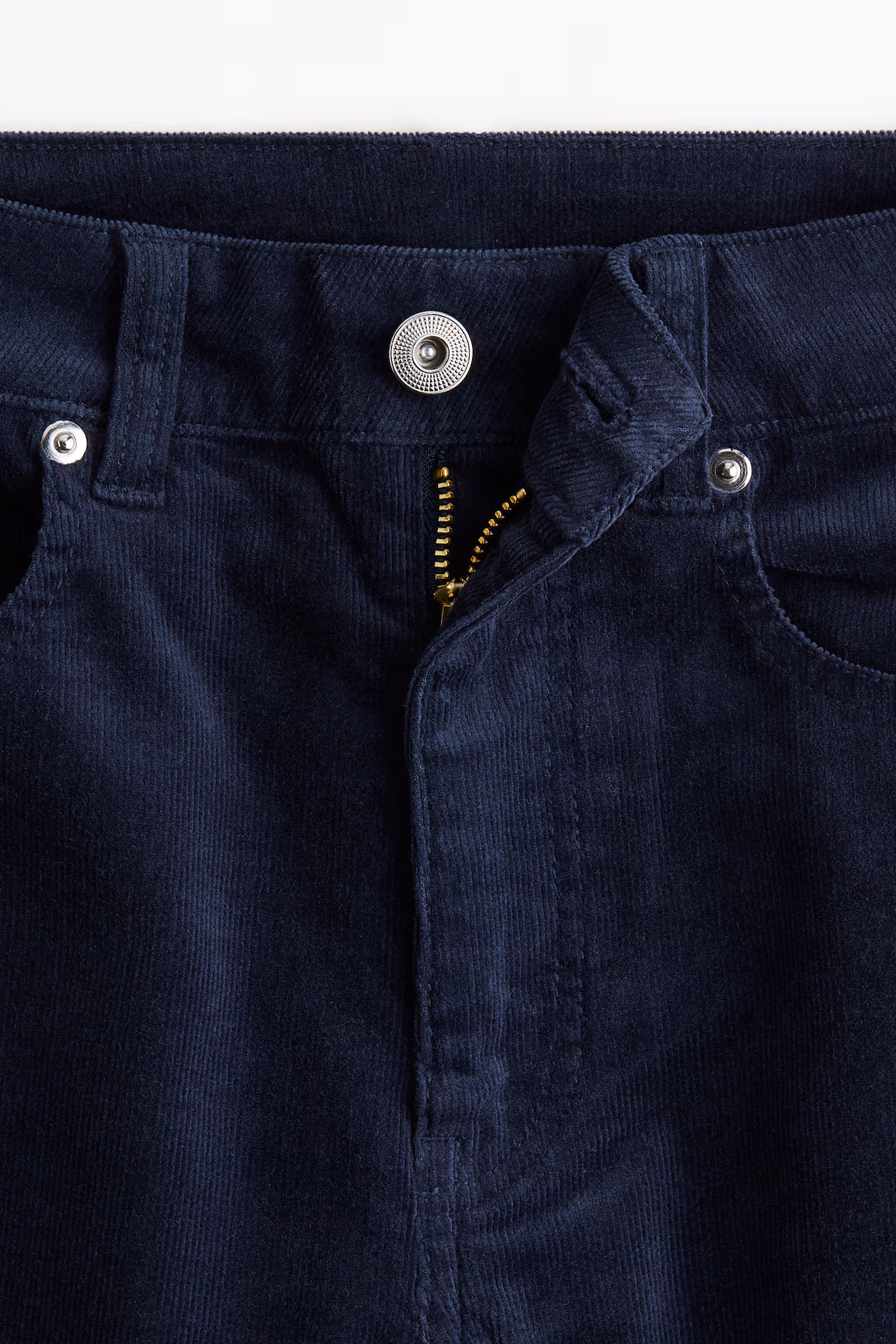 5-pocket, slim-fit pants in soft corduroy. High waist, zip fly with button, and flared legs.