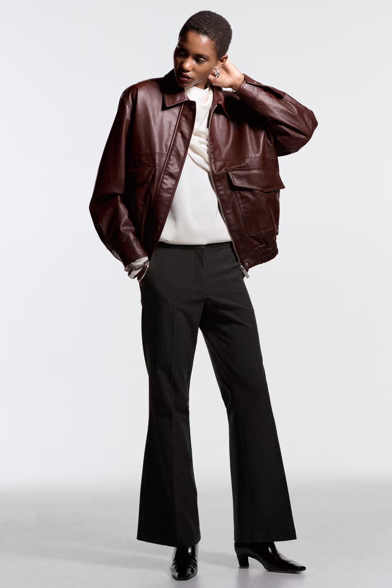 - The model is 180cm/5'11" and wears a size 4