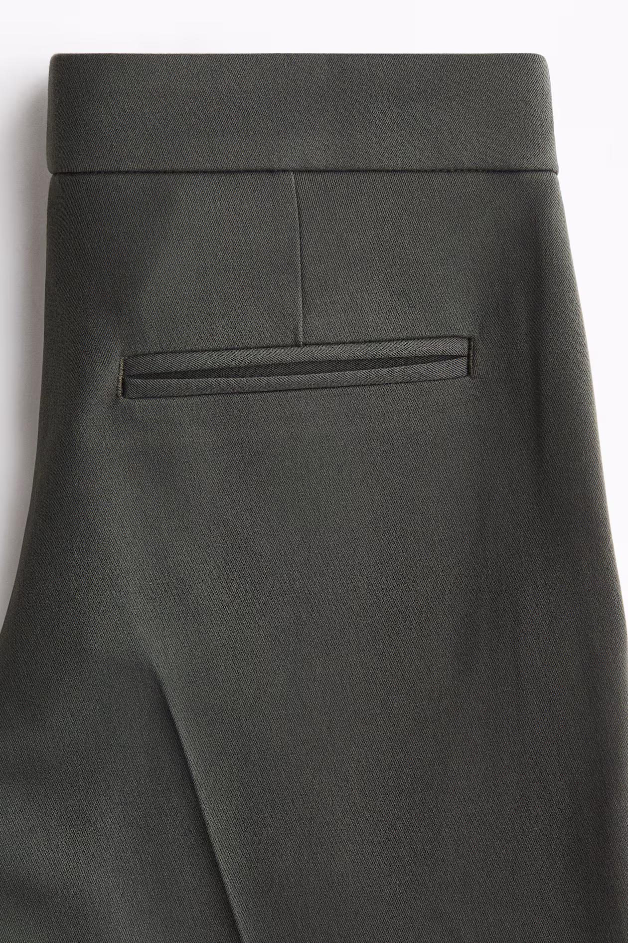 Dress pants in woven fabric. Zip fly with concealed button and hook-and-bar fasteners, diagonal side pockets, and welt back pockets. Flared legs with creases at front and back.