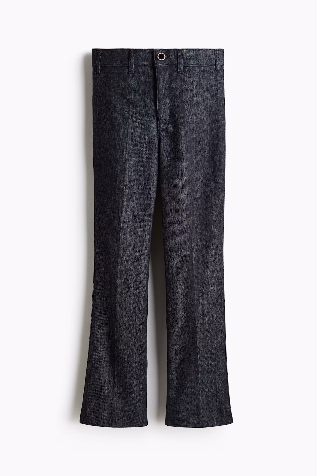 Ankle-length jeans in superstretch denim with a second-skin feel. Slim fit from waist to thigh and flared from knee to hem. High waist, zip fly with button, and welt front pockets. Flared, flattering, fabulous.