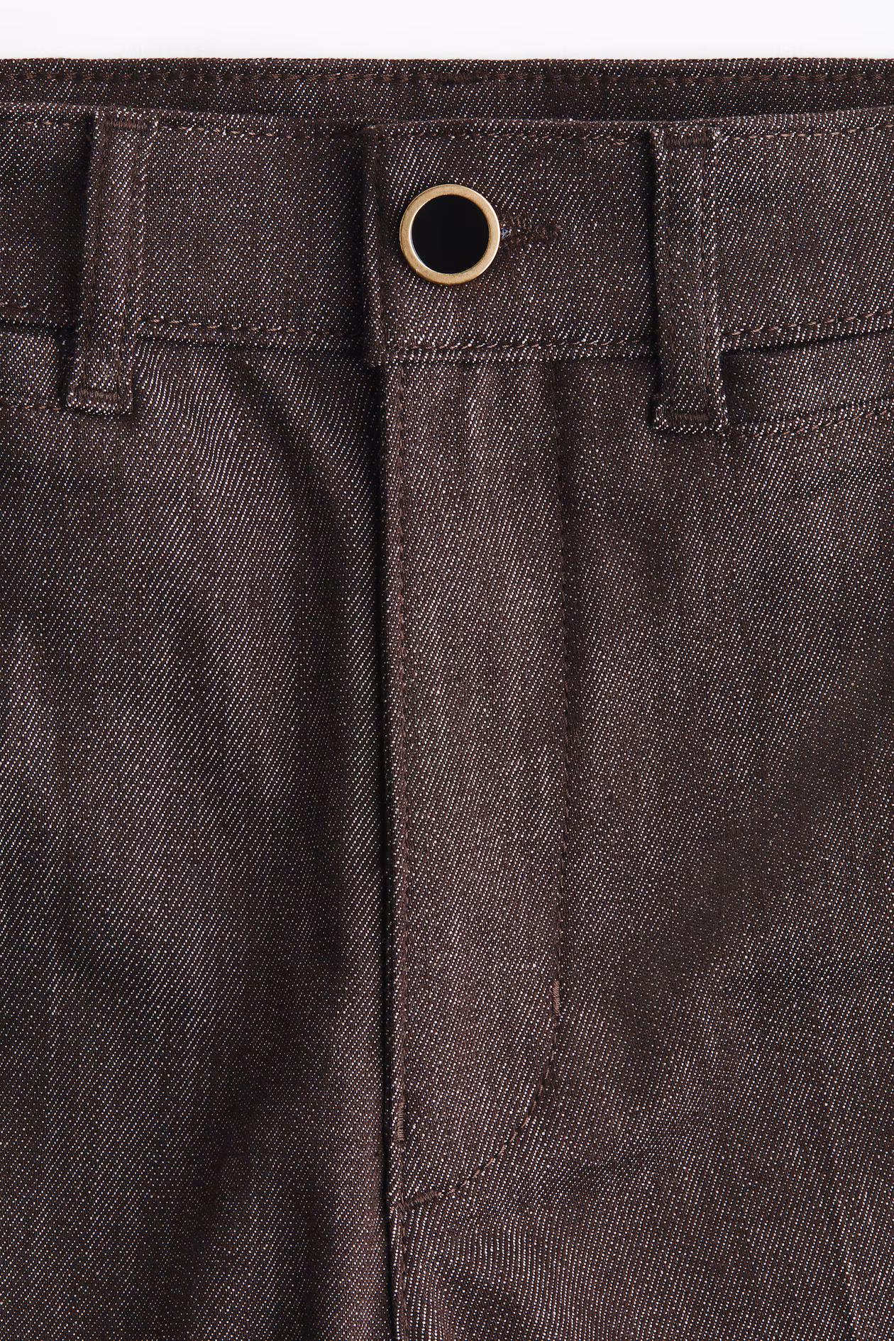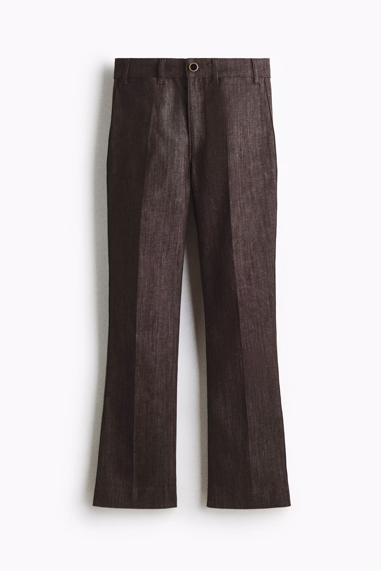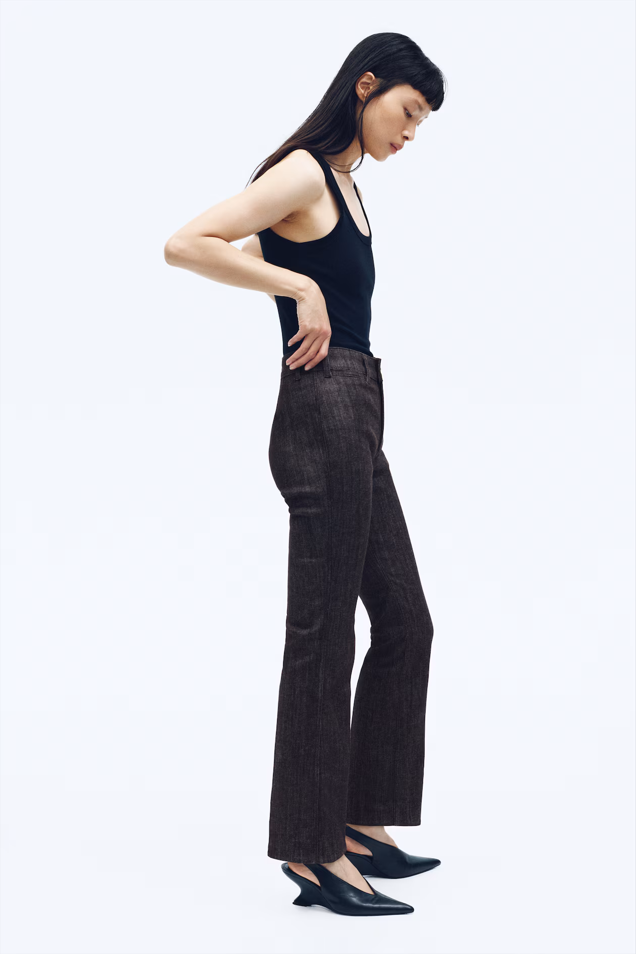 Ankle-length jeans in superstretch denim with a second-skin feel. Slim fit from waist to thigh and flared from knee to hem. High waist, zip fly with button, and welt front pockets. Flared, flattering, fabulous.