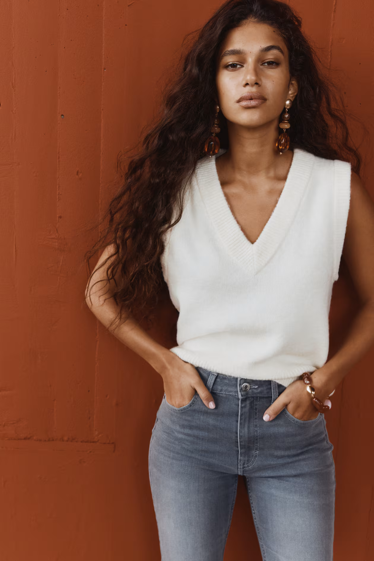 - The model is 173cm/5'8" and wears a size 4