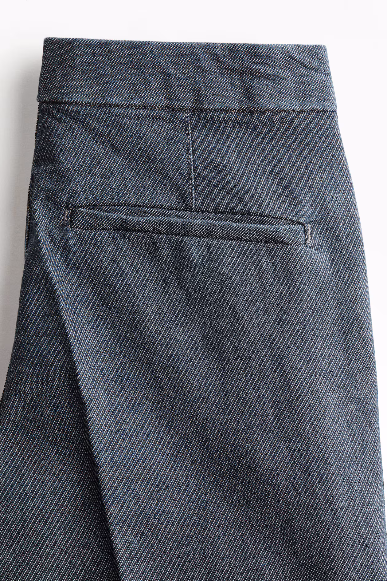 Jeans in cotton denim with gentle stretch for good comfort. Slim fit from waist to thigh and flared from knee to hem. High waist and zip fly with button and concealed hook-and-bar fastener. Diagonal side pockets and mock welt back pockets. Regular length, designed to fall at top of foot with little or no stacking. Style with everything from sneakers to ankle boots.