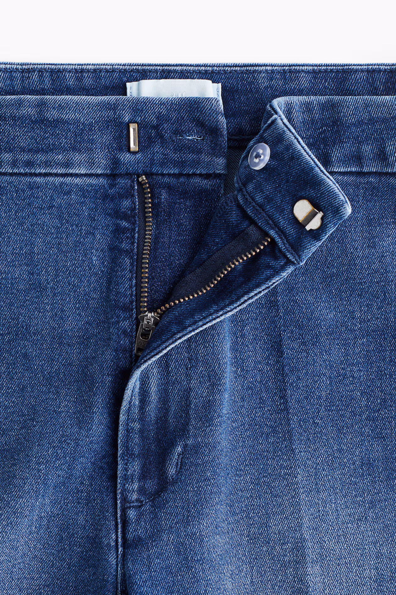 Jeans in denim with gentle stretch for good comfort. Slim fit from waist to thigh and flared from knee to hem. High waist, zip fly with a concealed button and hook-and-bar fastening, mock welt back pockets, and creases at front and back. Regular length, designed to fall at top of foot with little or no stacking. Style with everything from crop tops to chunky knitwear.