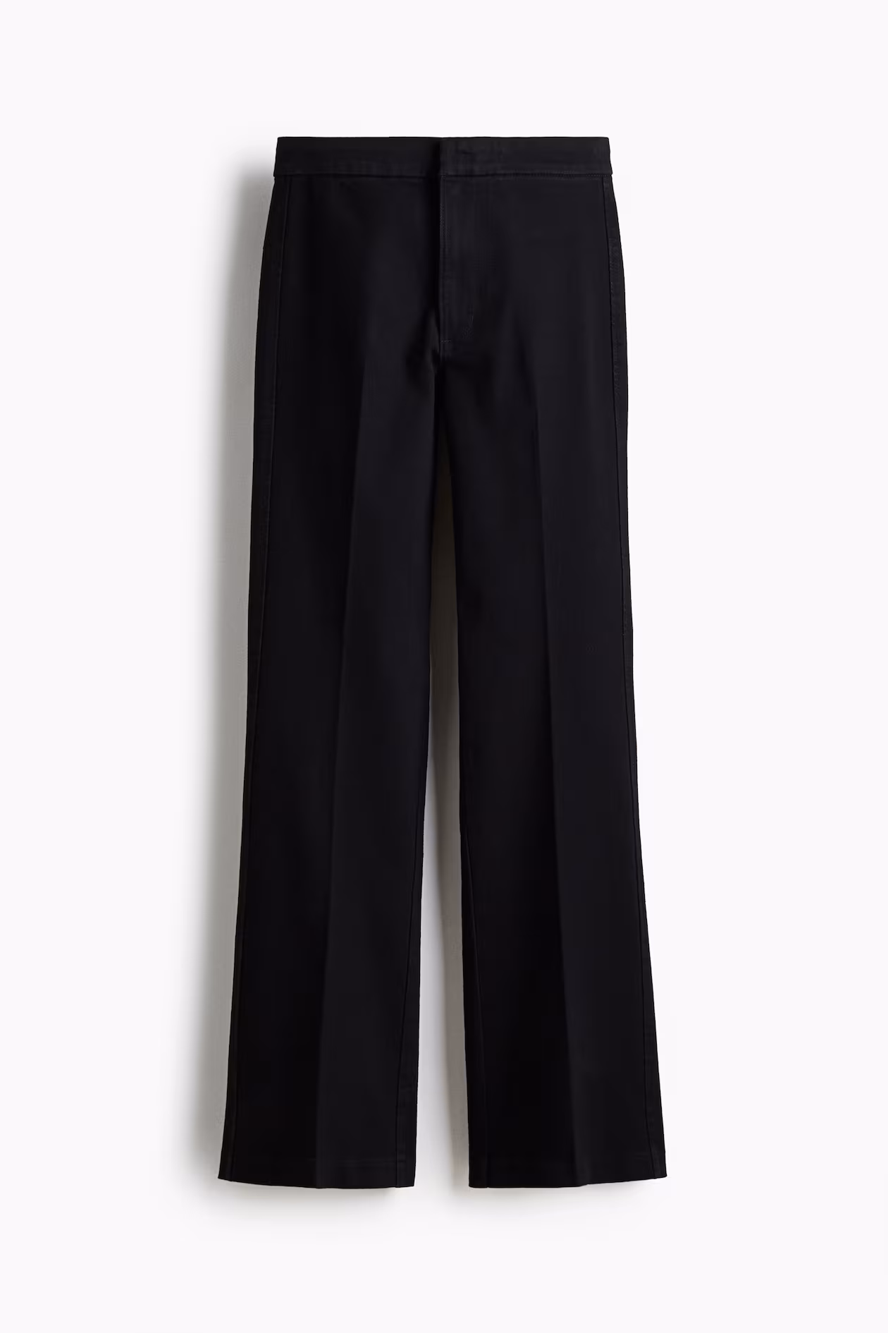 Jeans in denim with gentle stretch for good comfort. Slim fit from waist to thigh and flared from knee to hem. High waist, zip fly with a concealed button and hook-and-bar fastening, mock welt back pockets, and creases at front and back. Regular length, designed to fall at top of foot with little or no stacking. Style with everything from crop tops to chunky knitwear.