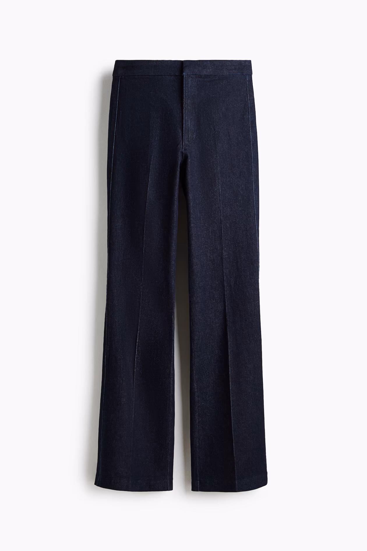Jeans in denim with gentle stretch for good comfort. Slim fit from waist to thigh and flared from knee to hem. High waist, zip fly with a concealed button and hook-and-bar fastening, mock welt back pockets, and creases at front and back. Regular length, designed to fall at top of foot with little or no stacking. Style with everything from crop tops to chunky knitwear.